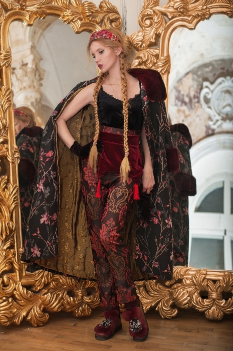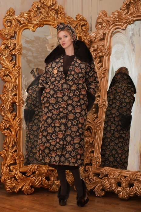 Московский дизайнер Дюша Васильева, победившая в онлайн-голосовании, — это Белла Потемкина, Ульяна Сергеенко и модница Екатерина II в одном лице. Рубашки с гжелью, бархатные платья с орденами, длинные пальто с кейпом и наряды с гигантским шлейфом (для королевских приемов, не иначе!) увенчаны короной, ставшей негласным символом ее марки «Икона Стиля».