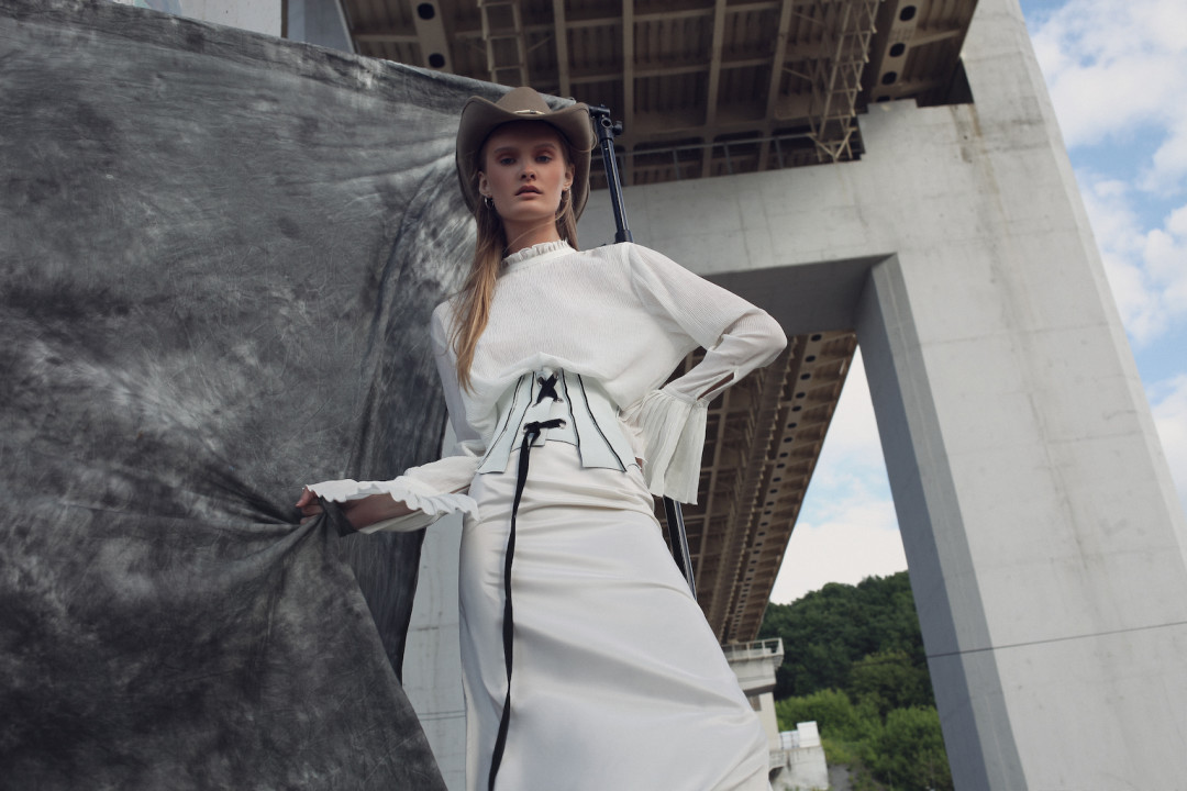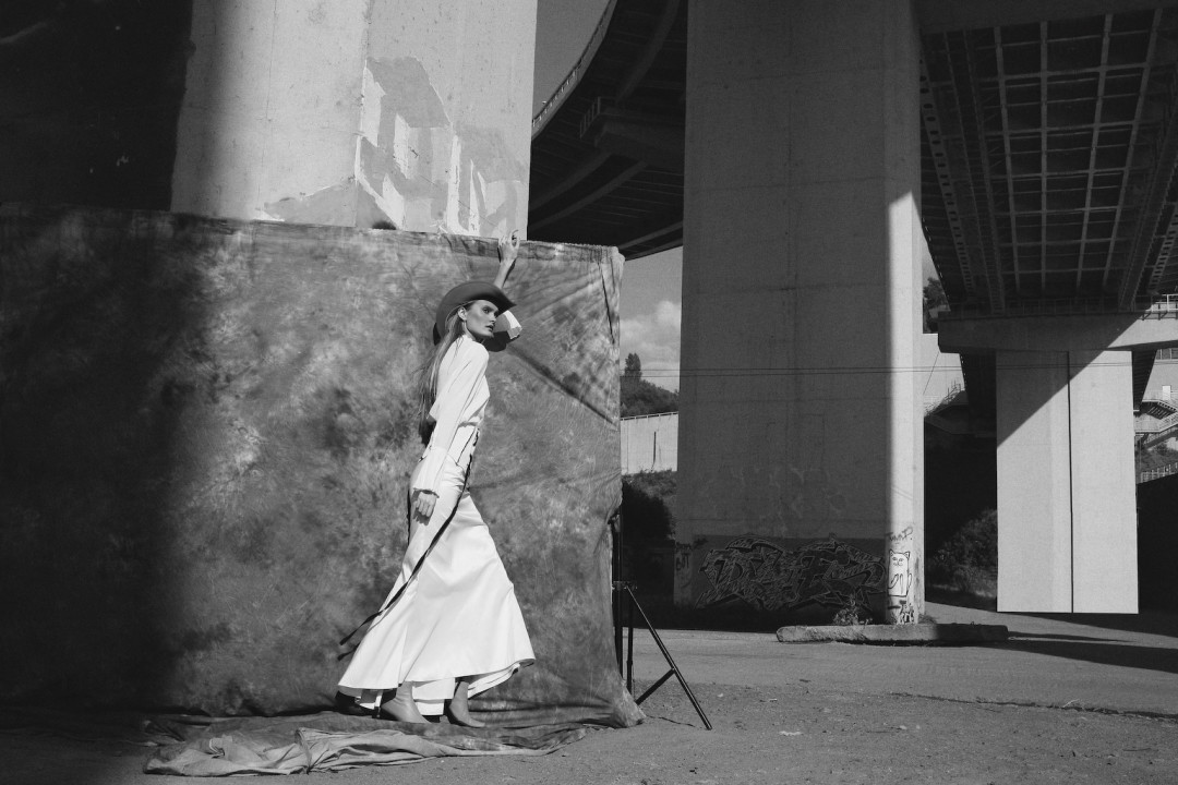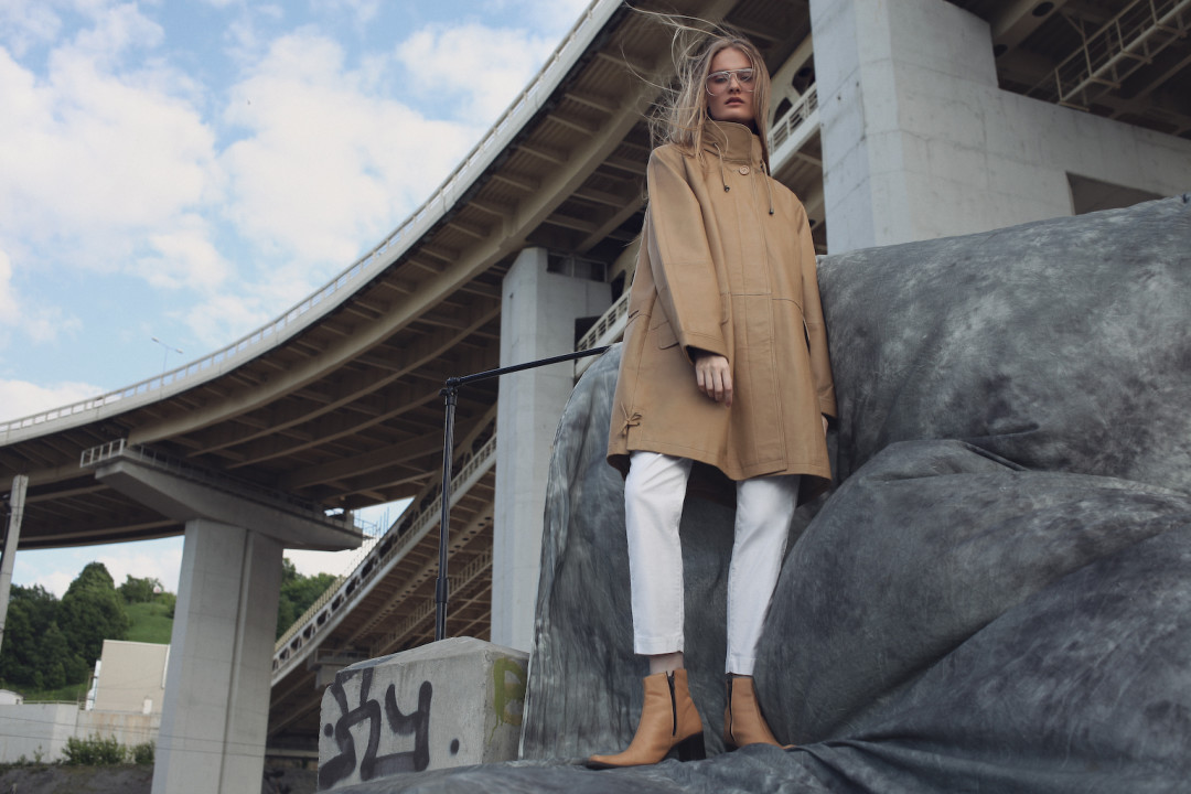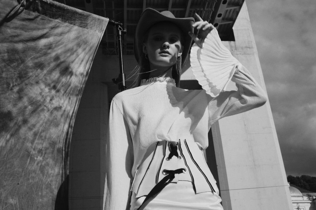 Стилист Елизавета Погодина:Мой стиль постоянно меняется под влиянием книг и кино. После просмотра сериала «Мир Дикого Запада» вдохновилась стилем ковбоев – шляпы, казаки, длинные юбки. Чтобы образы выглядели уместно на фоне городских локаций, я использую простые вещи без принтов. Стилистика считывается за счет силуэта и аксессуаров. За последние полгода моим новым увлечением стала охота на интересные винтажные вещи, как, например, белая свадебная юбка и песочная кожаная куртка, использованные для этой фотосессии.