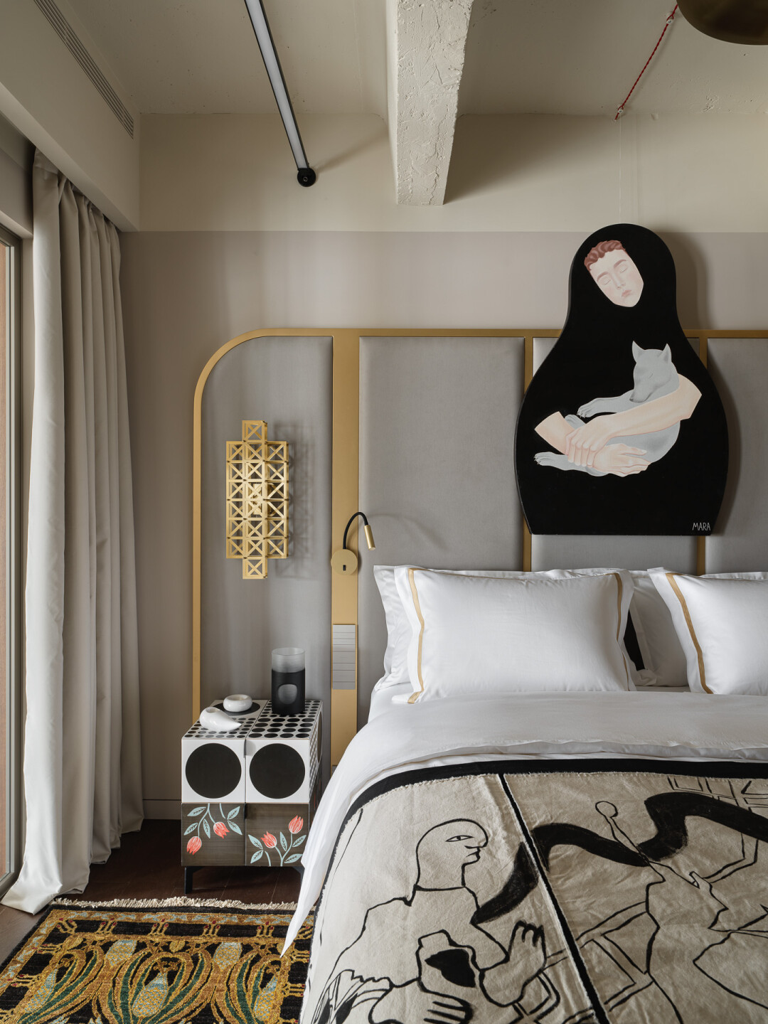 Другой характерный пример. Коллекция «Духи Байкала», которую мы делали совместно с учениками инклюзивной школы «Точка будущего» из Иркутска. Ребята изучали цветовые гаммы не только байкальского региона, но африканские и мексиканские. Так получилась абсолютно аутентичная коллекция, которой мы облицевали кровать и показали на выставке современного искусства.