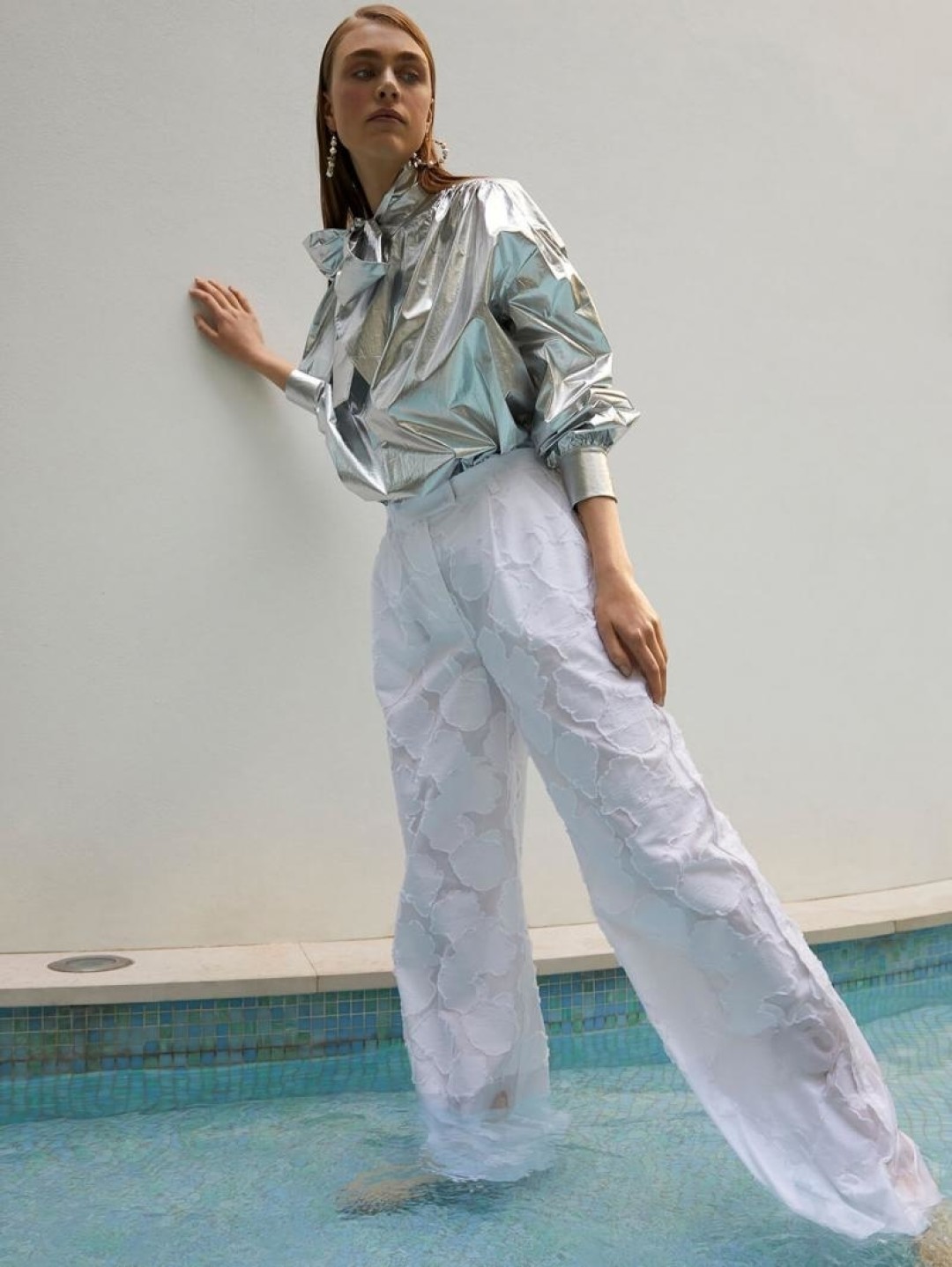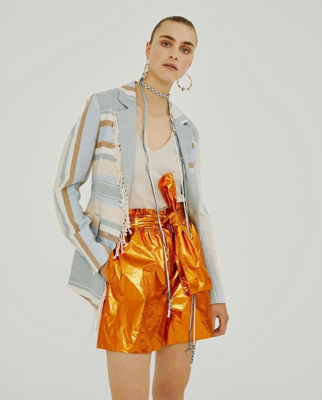 Блести-шурши в золотых шортах или серебристой блузе от итальянского бренда Beatrice. То ли конфета в блестящей обертке, то ли десерт из любимого ресторана, который решили взять домой – в любом случае, ассоциации с таким нарядом будут самыми сладкими.