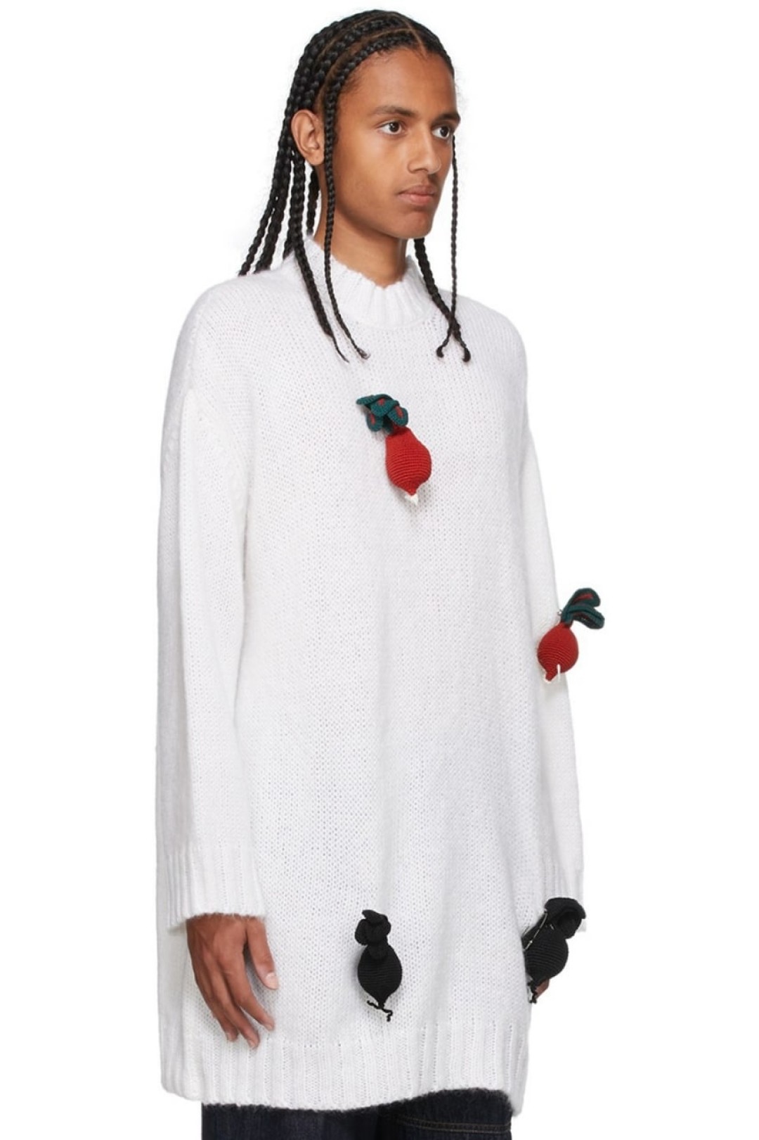 Смело называйте обладателя такого свитера «редиской» – быть редиской от JW Anderson почетно. Вязаные овощи, кстати, открепляются, а значит, в зависимости от настроения, можно быть генералом-редиской, леди-редиской или вообще безредисочным.