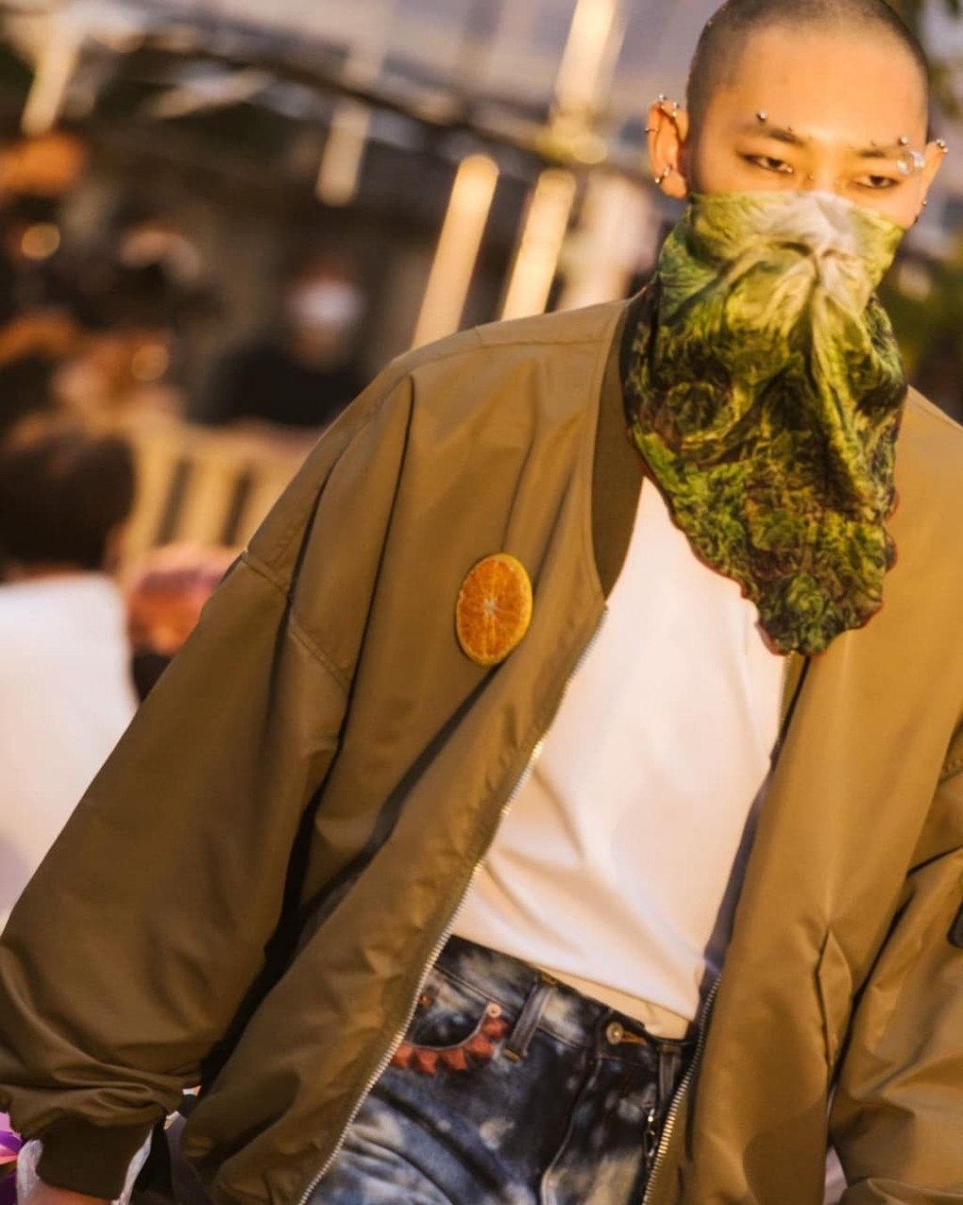 Капустная маска на вечеринке? Легко, если это бандана от дерзкого бренда Doublet! Помогает соблюдать инкогнито и антиковидные нормы безопасности. Ощущение, что ты самый модный голубец на этом празднике жизни – бесценно.