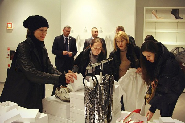 Ульяна Ким: Важно приходить не одной, а с друзьями — только тогда есть шанс, что вы успеете взять то, что хотите. А люди вели себя странно: толкались, кричали, чуть ли не выносили двери — вообщем, искусственно создавали панику, где ее можно не создавать, нужно было просто оперативно взять вещи, которые нужны. Были и такие, кто набивал сумки одними и теми же вещами, а потом тихо раздавал их другим: так было с боди и клатчами-конфетками. Хорошо, что я была с молодым человеком — он отнял серебряную «конфетку» у мальчика, который забрал всё, что было.