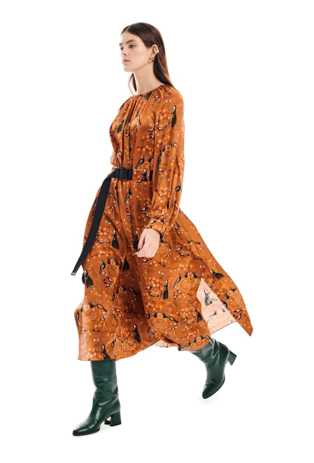Шелковое платье из октябрьской капсулы с принтом, рассказывающим новую сказку о царевне и волшебных птицах – верный способ приманить в наступающем году чудеса. Платья от AKHMADULLINA – это старинные русские сказки и богатство тканей, создающих образ современной царевны, управляющей праздничным пиром. Рукава-фонарики, длинные пышные юбки, анималистичные мотивы вышивки – все это родом из детских сказок и той поры, когда наступление чуда – нечто очевидное и неизбежное. Пушистые друзья сопровождают свою принцессу на новогодний бал, и вот ты уже Белоснежка, которая спешит на встречу со своим единственным принцем. Или семью гномами...
