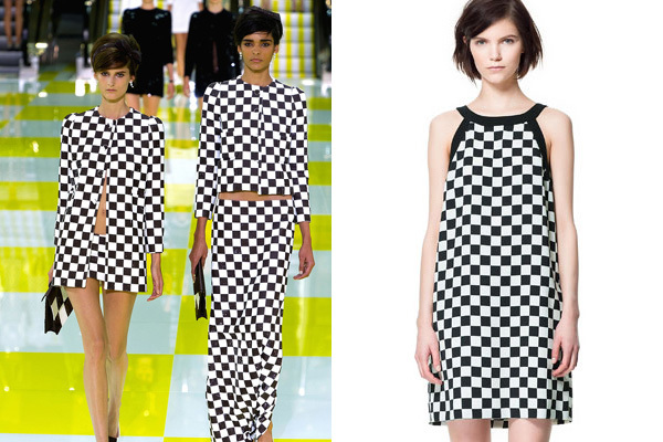 Лукбуки масс-маркетов кишат нарядами в шахматную клетку: и если костюмы, как у Louis Vuitton, выглядят эпатажно, то инфантильные платья от Zara сгодятся для повседневности.