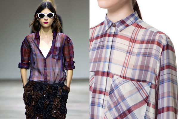 Своей летней коллекцией Дрис Ван Нотен будто провел мастер-класс на тему «20 способов скомбинировать лук с рубашкой в клетку». Дизайнер миксует ее с майкой, шифоновыми платьями, жилетами или с еще одной клетчатой рубашкой схожего тона. Экспериментировать можно с похожей рубашкой из Zara.