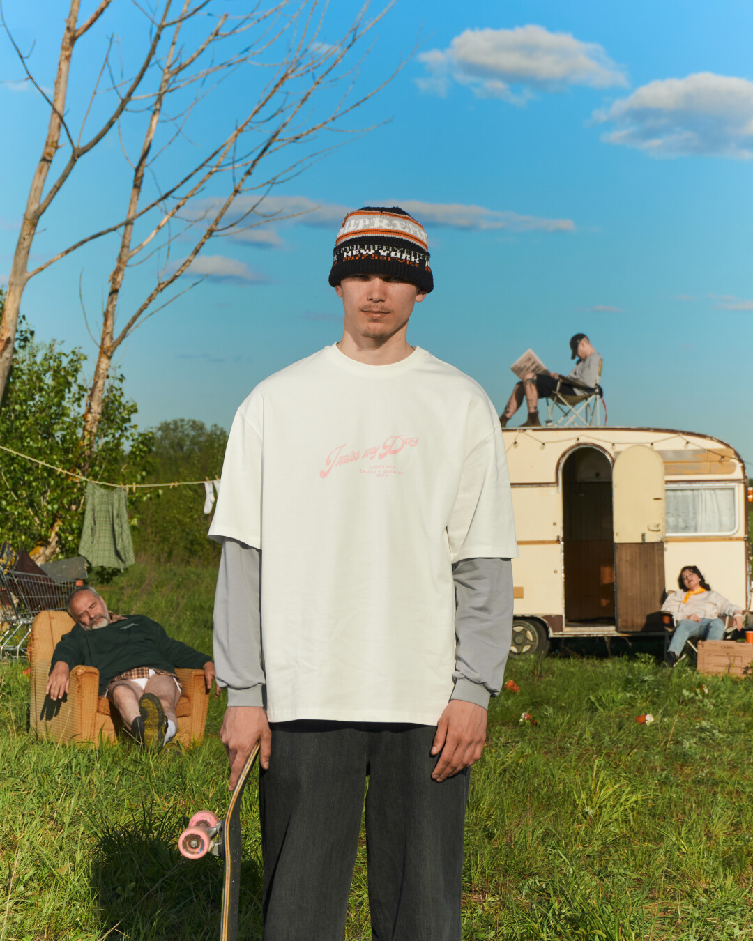 Коллекция создавалась на протяжении года. Это уникальный запуск — повторять не планируют. В ней есть конструктивно несложные изделия на каждый день — лонгсливы, футболки, свитшоты и худи. А еще нетривиальные аксессуары — керамические миски, ланчбоксы и кепки.