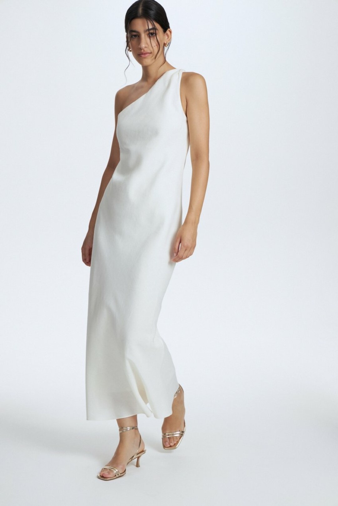 Светлое приталенное платье в пол LIME — классика вне времени. Будет актуально и летом 2024, и в следующем сезоне. Есть подклад, а это гарантирует более комфортную посадку. За лен и вискозу кожа скажет вам отдельное спасибо. Особый шик (и причина, по которой эта модель оказалась в нашем обзоре!) — ассиметричная линия плеч и драпировка на бретели.