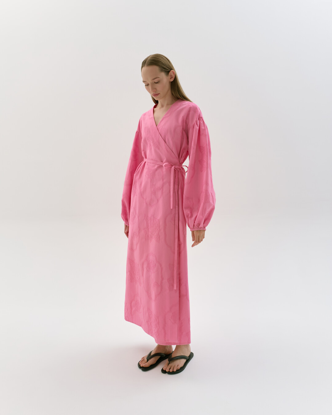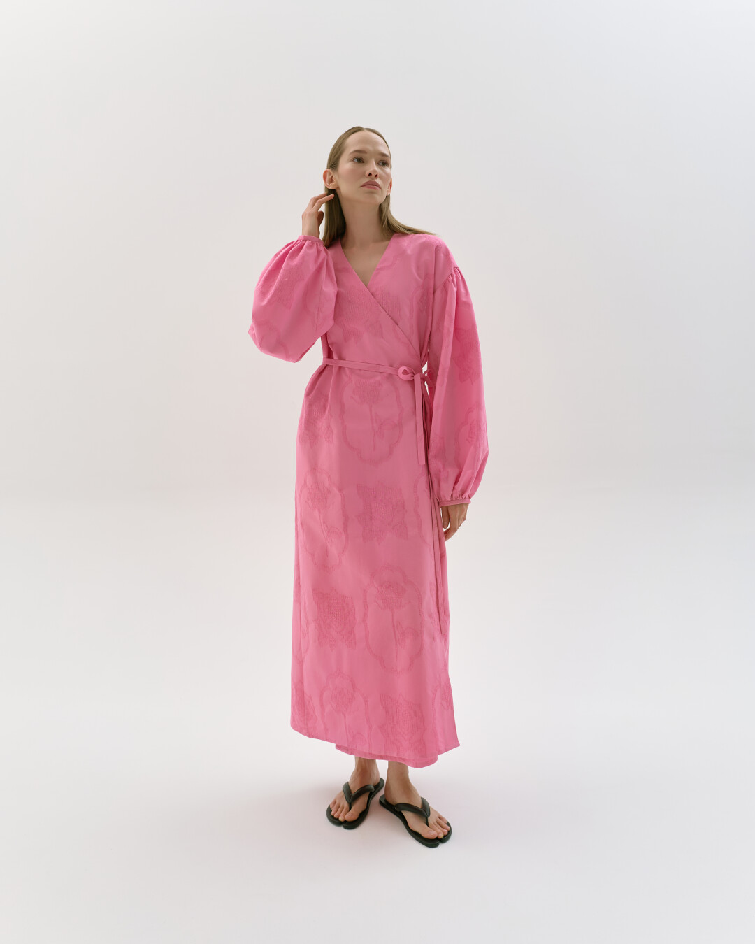 Вырастить свой собственный розовый сад — по крайней мере, на этом платье из воздушного хлопка от нижегородского бренда Mashkara. Ткань украшена сложной изящной вышивкой — розами в технике мережка. Мы оценили актуальный и садящийся практически на любой тип фигуры фасон: крой на запах и объемные рукава — и для хрупких малышек, и для дам поплотнее. А еще оно удобное: есть карманы в боковых швах, а потайной и декоративный пояс вшиты в полочки. Носить — и не думать ни о чем сложном!