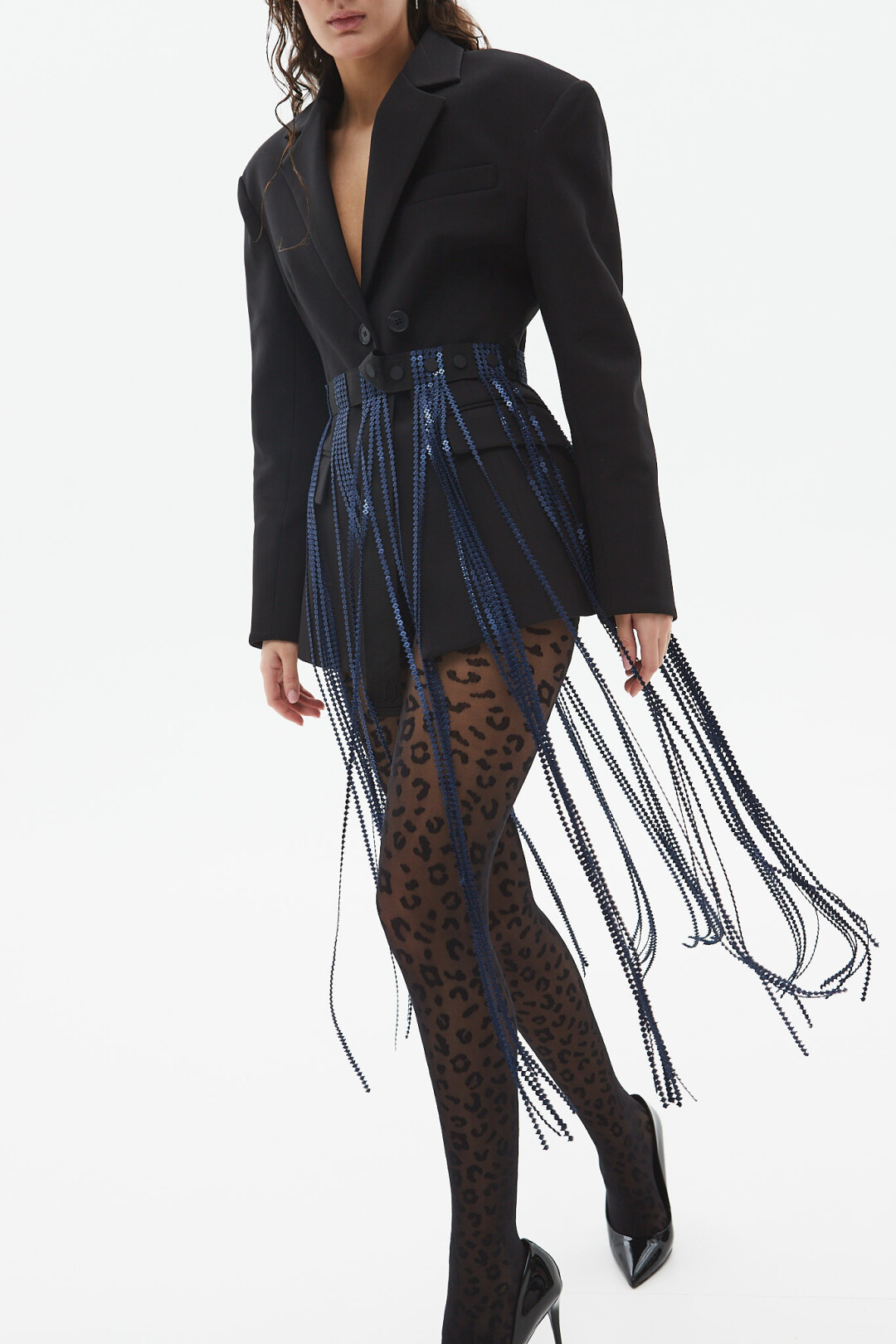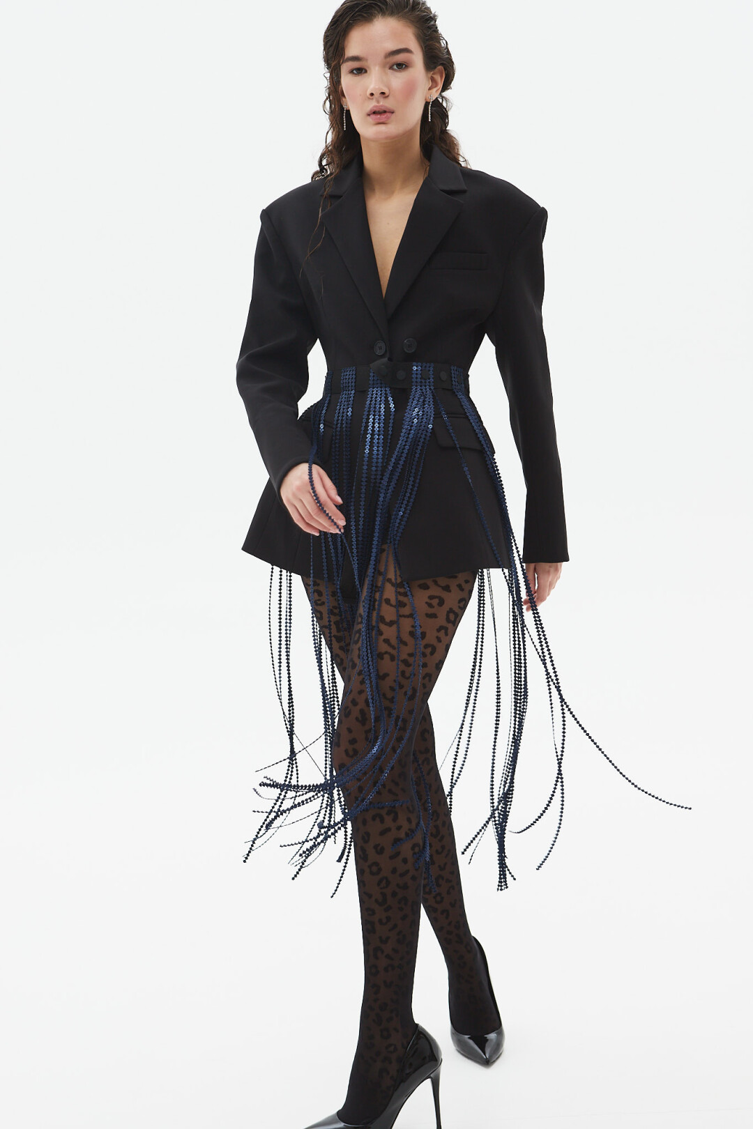 Волшебство геометрии и пропорций: пояс-бахрома из пайеток от нижегородского бренда Tiu акцентирует внимание на талии, визуально вытягивает силуэт и придает фигуре более изящные формы. Колыхание нитей бахромы напомнит о том, как быть плавной, непринужденной и кокетливой, а носить этот небанальный аксессуар можно с юбками, брюками, джинсами — пояс впишется практически в любой дресс-код, от нашего любимого black tie creative до бохо и этники. Мобильности и легкости трансформации (бросила утром в сумочку, вечером достала, застегнула кнопки — вуаля!) — отдельный респект.