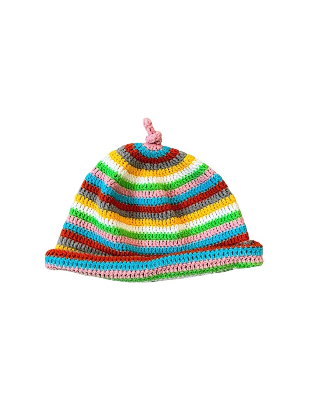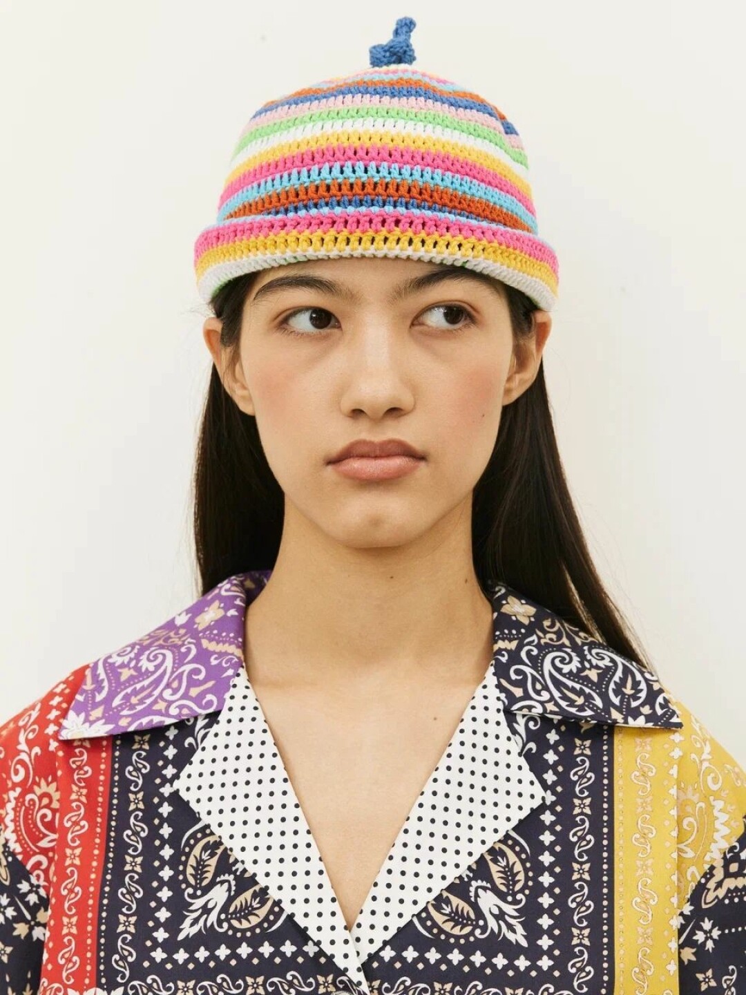 Веселая шапка от нижегородского дизайнера Оли Миклиной (бренд Yallo), которая пригодится холодными вечерами или на рассвете, будто консервирует в своих цветах все самые яркие летние впечатления. Пряжа — хлопковая и с шерстью, но отсутствие подкладки делает модель легкой. Она отлично тянется и садится практически на любой объем головы.