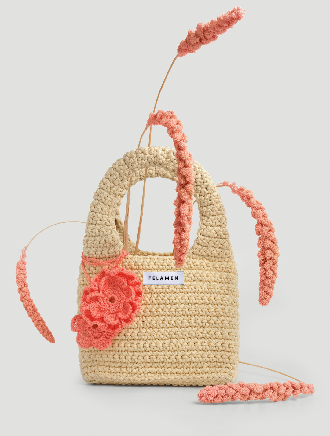Эта плетеная сумка с кокетливым названием «Pippa small» от нижегородского бренда Felamen — модное кроше во плоти, да еще и украшено тремя брелками из цветов. Уместна и в городе, и на отпуске. Сумка связана крючком вручную, но в отличие от тех, которые обычно творят рукодельницы, имеет выверенную трендовую форму и специальное отделение с накладным внутренним карманом.