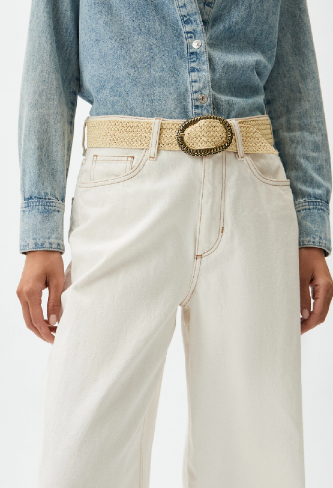 Еще один вариант «капнуть» трендовое кроше в образ — ремень Mango (более чем наполовину — из бумаги!). Металлическая пряжка цвета бронзы — вечная классика.