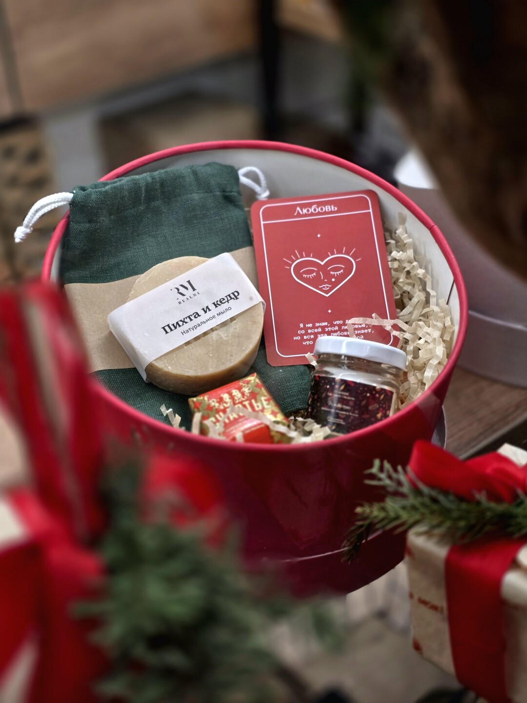Подарочный бокс из уходовых средств, с одной стороны, можно собрать самим. А можно — доверить это дело профи: проект «Душа моя!» (онлайн-магазин и офлайн-отдел при магазине «Дирижабль») создает подборки приятных мелочей так, что готовый к применению комплект для маленького зимнего ритуала наслаждения. Наш выбор — бокс «Тепло зимнего вечера»: принимаем ванну с натуральным мыло с ароматом пихты и кедра (потом его можно будет убрать в мешочек из натурального льна, который тоже входит в комплект), зажигаем свечу на кокосовом воске с ароматом сладостей, а затем пьем чай с праздничной конфетой-пралине со смесью специй «гарам масала» в молочном шоколаде, медитируя над метафорической картой-открыткой.