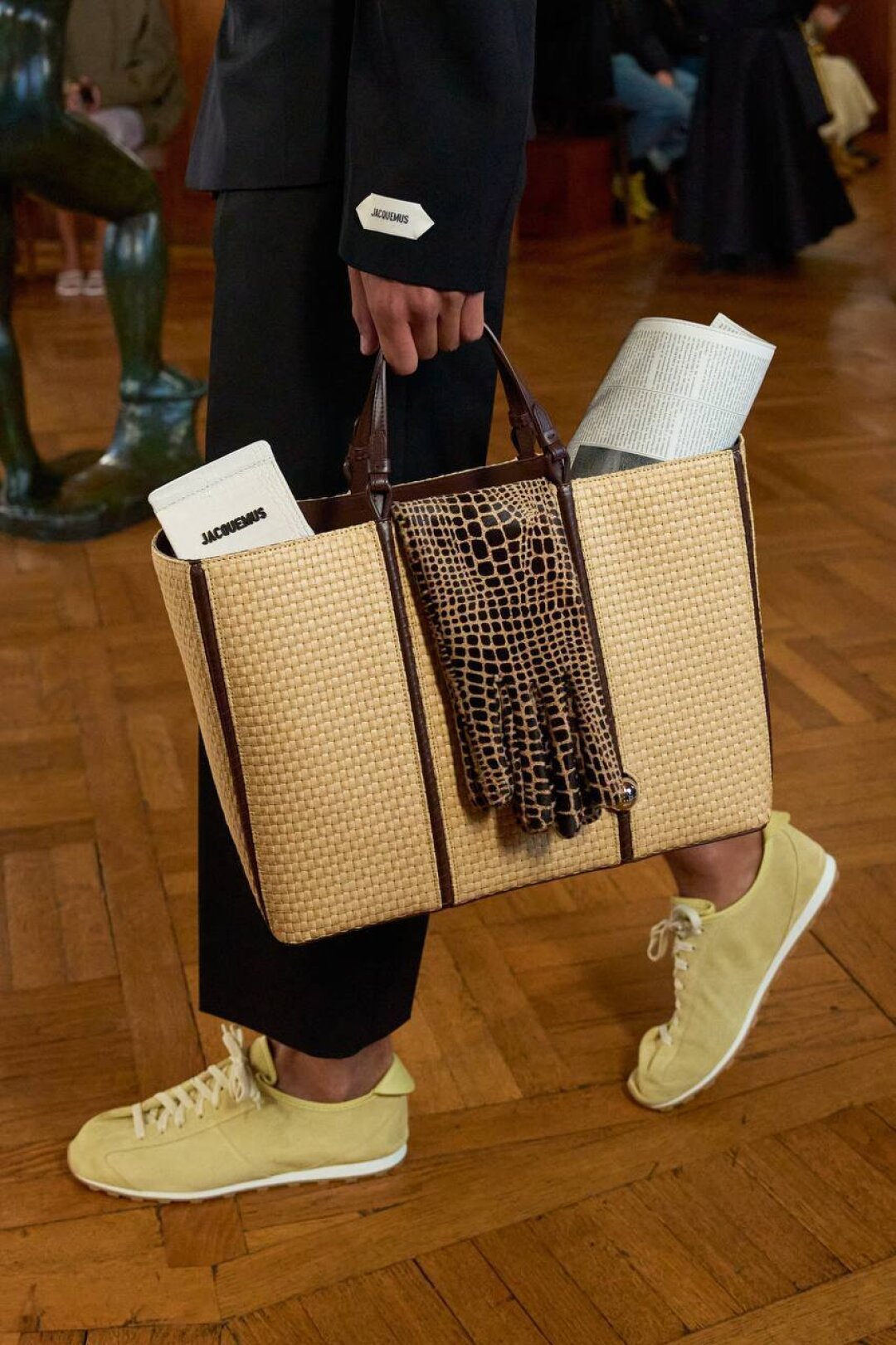 В этом сезоне рафия не одинока: дизайнеры Bottega Veneta сочинили мешок Франкенштейна из соломы и ротанга, а в Hermes вплели соломинки в кожаный каркас. Привычные сумки из рафии тоже с нами — Симон Порт Жакмюс в бренде имени себя показал ее в виде классического тоута структурированной формы с контрастными деталями из кожи (приспособится даже к офисному дресс-коду в тандеме с двойками и шелковыми рубашками!), а сестры Олсен в The Row расширяют фэшн-диапазон пляжного изумрудного баула, миксуя его с черно-белым сетом изо льна.