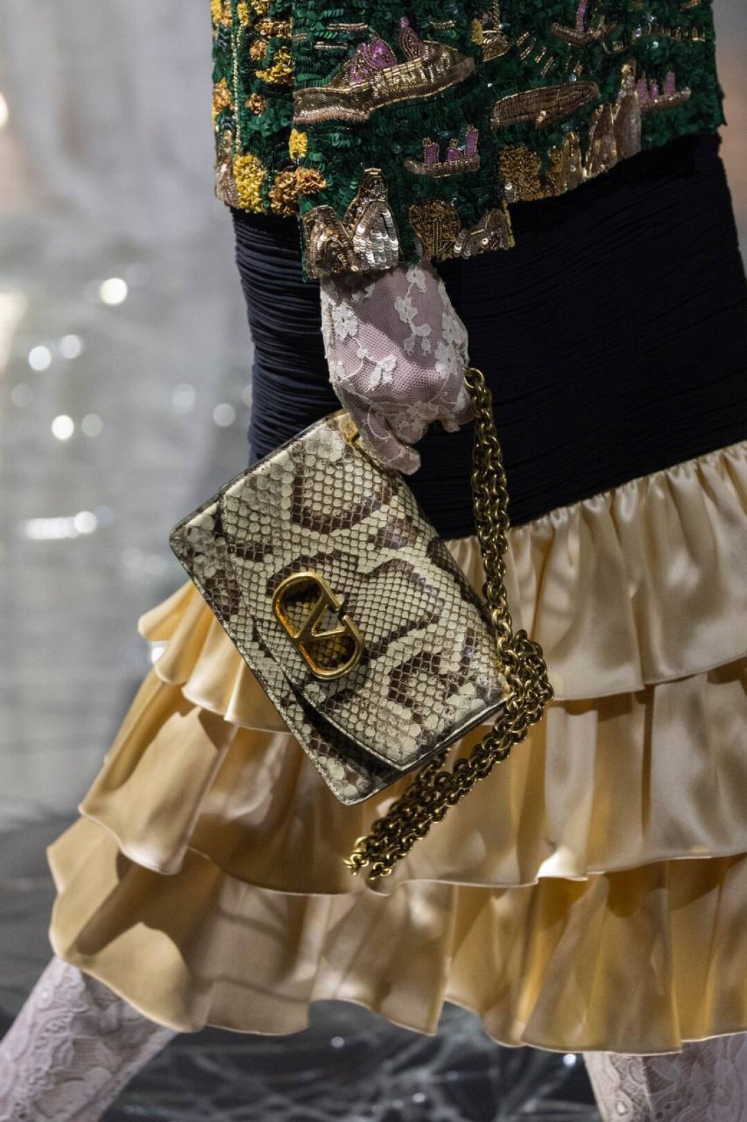 Змеиный принт — новая Римская империя дизайнеров — от Алессандро Микеле до Кэтрин Гольштейн, пришедшая на замену леопарду. Снейк-безумие перекинулось с питоновых юбок Bottega Veneta и рубашек Jacques Wei на рептильные аксессуары Dries Van Noten и Jil Sander. Чтобы успокоить дикий принт, миксуйте его с total black (как сделали на показе Khaite), а если фэшн-покой не для вас, то берите пример с Valentino — сочетайте рептилию с пайеточным шинуазри-жакетом, массивными ретро-украшениями и юбкой с воланами.