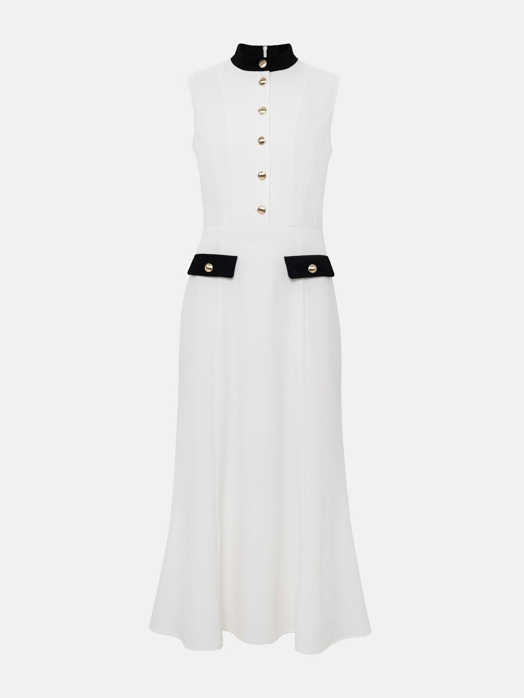 Стиль «олд мани» уместен, когда хочется нарядиться, но и не затмить выпускников. Этот образ — воплощение утонченной роскоши, которая не кричит, а шепчет. Силуэт платья макси от LICHI струится по фигуре с королевской непринужденностью, а игра текстур и оттенков добавляет глубину, делая образ одновременно строгим и загадочным.