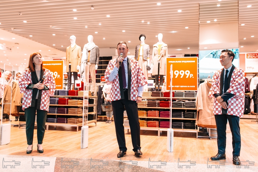 Во время церемонии открытия гостей магазина лично приветствовали Генеральный Директор UNIQLO Россия Ота Томоюки, Глава города Елизавета Солонченко и Генеральный директор ТРЦ “Фантастика” Александр Кокович.