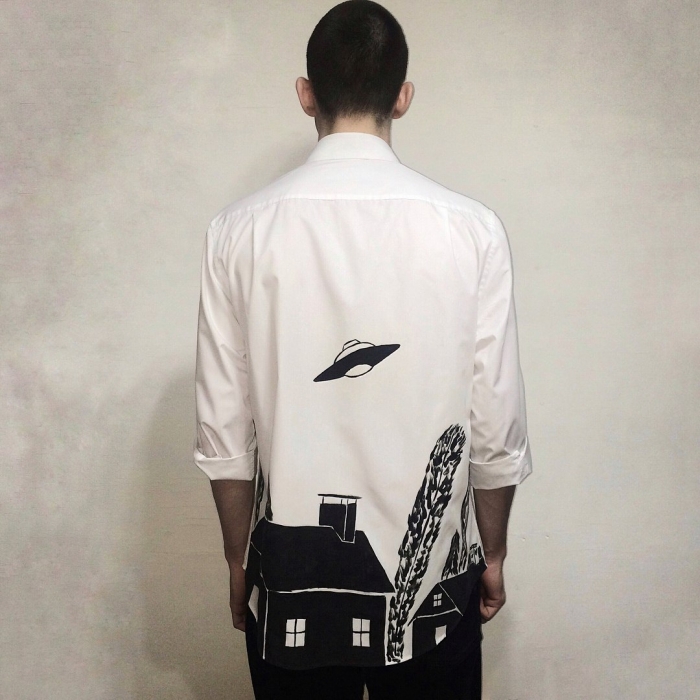 "Наш бренд - это совокупность спонтанных идей, начиная от стиля принтов и заканчивая внешним видом вещей. Когда создавались первые рисунки, я ничего не выверял: просто начал черкать карандашом по бумаге. Идея с рубашками тоже возникла из ниоткуда. Я ходил по дому и просто представил свою красную рубашку с рисунком космонавта на белом фоне. В этот же день я купил краску и всю ночь рисовал. Так появилась "Полоса", через которую каждый может связаться со мной. Это билетик на пять минут в мою голову".
