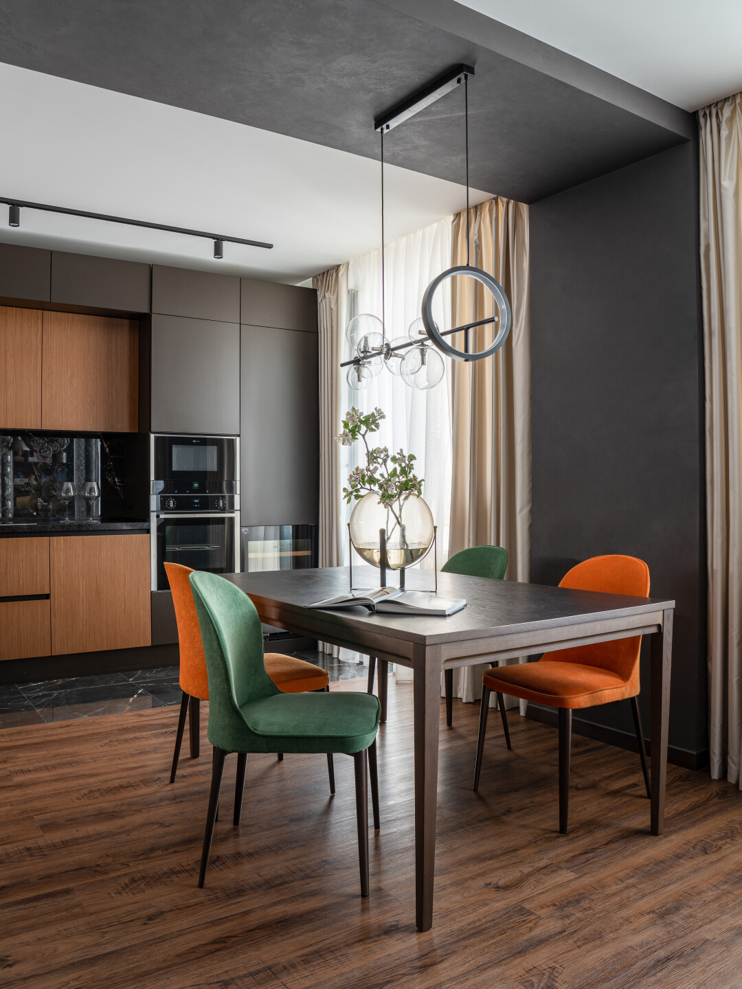Найти подходящие к концепции интерьера цвета и фактуры и наполнить дом модными дизайнерскими вещами нам помог российский бренд Dantone Home. Большая часть его ассортимента производится в России, поэтому сроки изготовления и поставок оптимальные, а соотношение цены и качества очень радует. В прекрасном атмосферном шоуруме в Corner Place можно все рассмотреть, потрогать, «примерить» предметы к будущему интерьеру и вместе со специалистами компании подобрать мебель.