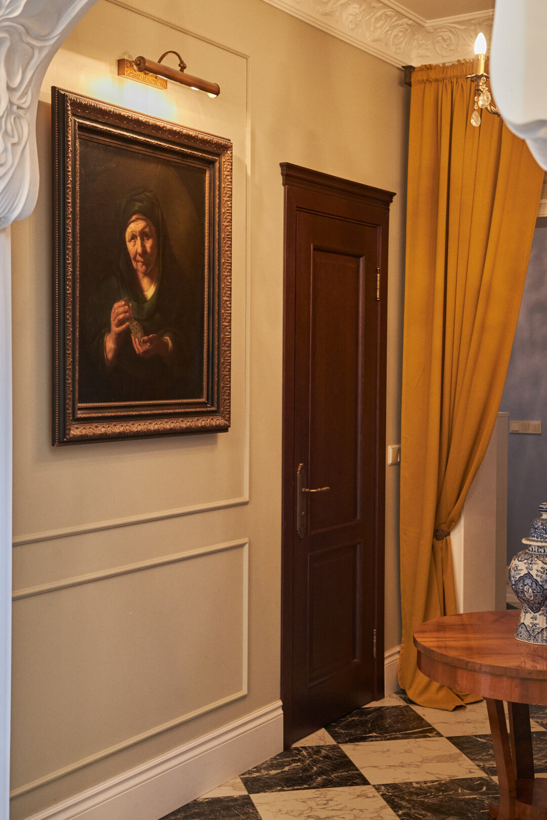 Придумывала каждое помещение сама, не обращаясь к дизайнерам. В тренде были минималистичные бело-серые интерьеры, большинство интерьерных дизайнеров работали в этом направлении. Тогда я поняла, что мое видение никто не воплотит в жизнь лучше меня, и думаю, что в целом неплохо справилась: и стилистически, и с технической точки зрения. По первому образованию я юрист, но еще со школы меня тянуло к дизайну, искусству, вещам с историей. Я родилась и жила до шести лет на Алексеевской, 23 – это памятник архитектуры в стиле модерн, известный как доходный дом В.С. Прядилова. Мне кажется, на каком-то подсознательном уровне это тоже на меня повлияло.