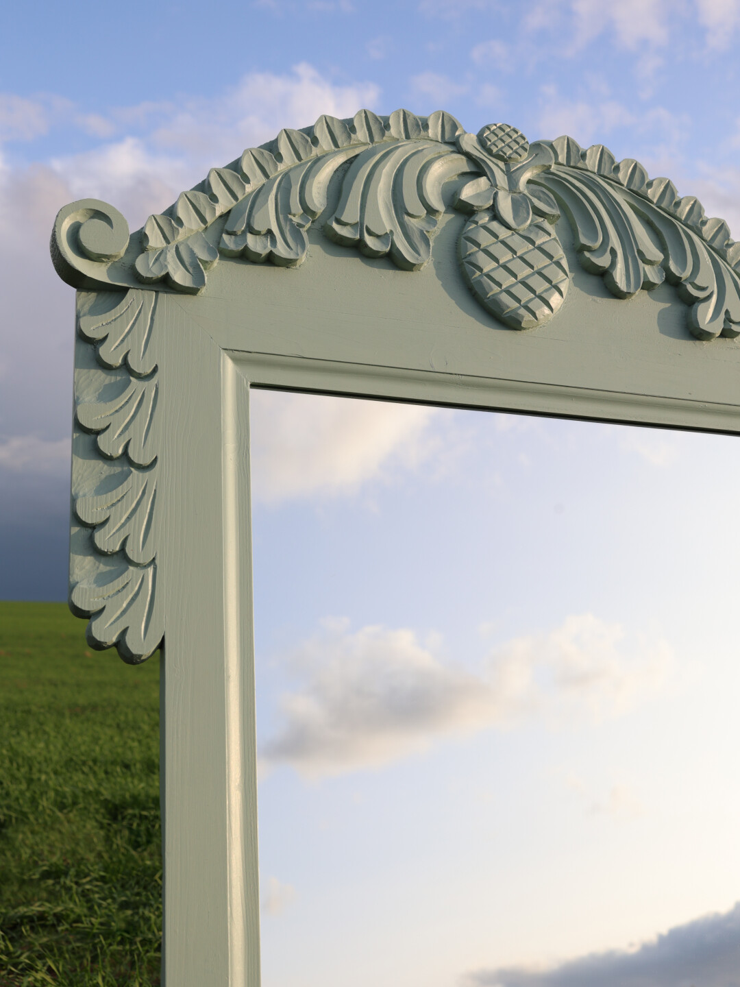 В Городце познакомились с проектом «Лев и вишня», которым руководят Галина Торопкина и Наталья Дукантони. Они занимаются тем, что находят старинные наличники, реставрируют их и либо возвращают обратно на окна домов, либо размещают в музеях. Благодаря им родилась идея полностью воссоздать этот элемент архитектуры XIX века, но добавить в него что-то новое. Поэтому наши мастера применяли техники тех времен и на создание первой нашей работы ушло примерно полтора месяца. Конечно, не обошлось и без вдохновения современными трендами. Так как хотелось интегрировать наличники в фэшн-повестку. Поэтому решили красить их в модные цвета, например синий или цвета зеленого яблока, и украшать самыми необычными рисунками. Вряд ли кто-то ожидает увидеть на этом элементе ананас, хотя на самом деле такой вариант оформления существовал и раньше.