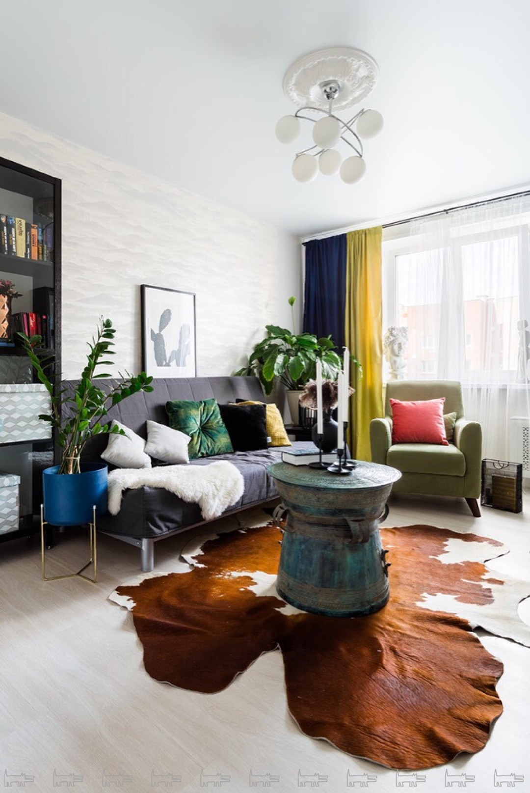 «Бабушкина история» или «винтажная солянка» - так можно охарактеризовать дизайн этой квартиры для бабушки-швеи, где сохранены все предметы с историей, а большинство мебели было куплено на барахолках и сделано своими руками. Весь текстиль создала сама бабушка: ковры, подушки, занавески, вышивки в виде картин - ее авторское видение. У каждой вещи была своя история, поэтому интерьер создавался под стать всем предметам, что бережно хранила хозяйка квартиры. Стены изначально задумывались светлыми, чтобы придать шарм и подчеркнуть историческую ценность предметам мебели. Теперь каждый уголок снова обживается новыми предметами интерьера, и бабушка-швея с гордостью пополняет свою коллекцию.