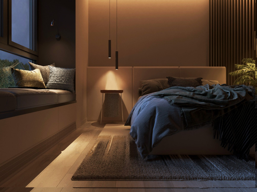 Всегда можно включить теплый, неяркий режим для отдыха, акцентное освещение для чтения или выделить только обеденную зону для романтического ужина. Не нужно забывать и про режим, когда помещение наполнено чистым белым светом и превращается в идеальную площадку для приема гостей или уборки. Также при помощи системы управления можно запрограммировать свет таким образом, чтобы он своим плавным включением будил вас по утрам и успокаивал теплой подсветкой вечером.