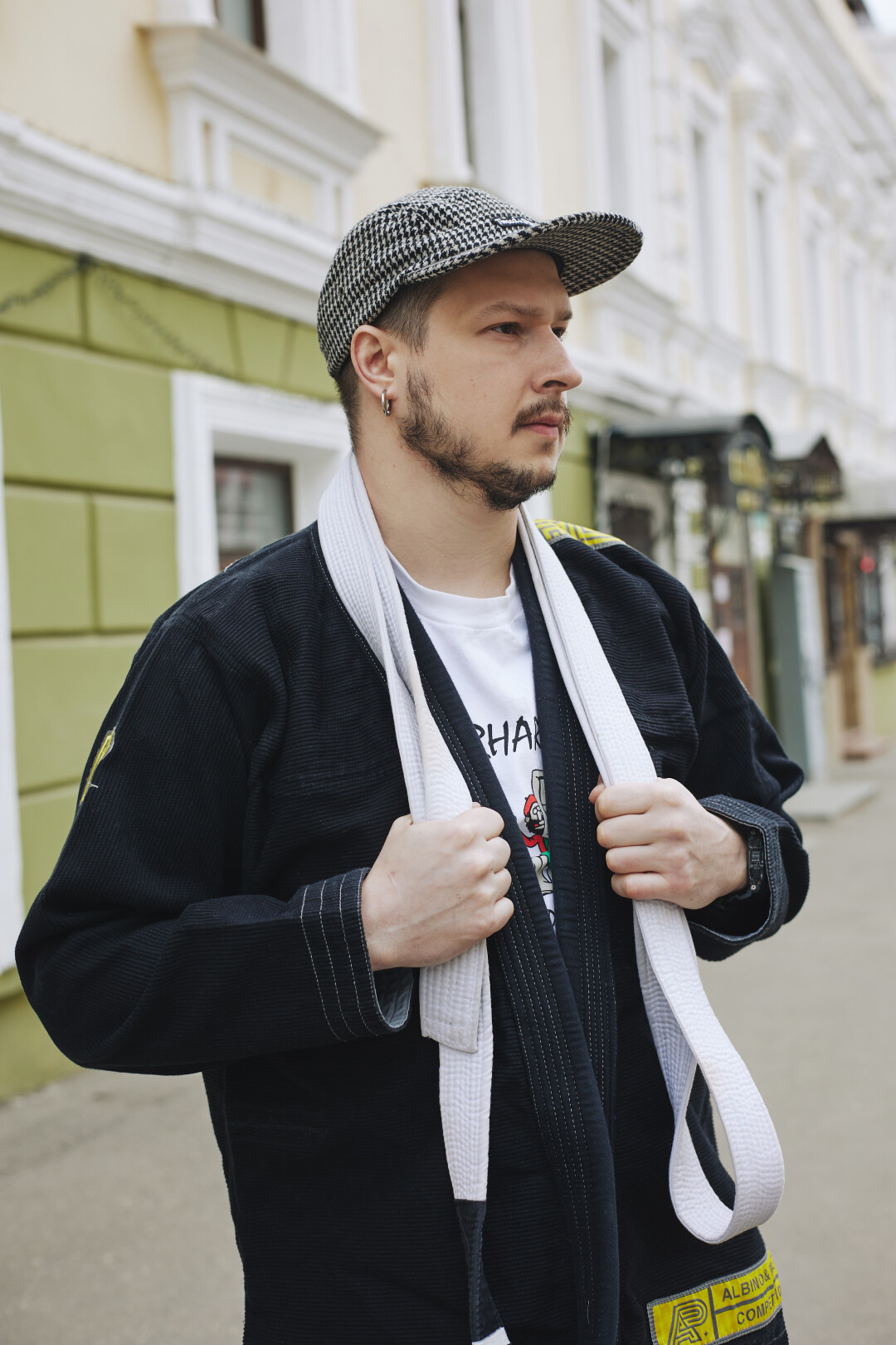 Вячеслав Синицын, шеф-повар и боец джиу-джитсу: «В течение трех лет, с переменным успехом из-за работы, занимаюсь джиу-джитсу. Однажды искал секцию по боксу, но мне порекомендовали это боевое искусство. Пришел, познакомился с тренером и больше не уходил, затянула философия. Джиу-джитсу – очень андеграундное движение. У меня даже татуировка на груди есть про ежедневную борьбу – не только с соперником, но и с самим собой. Мне это все нужно для душевного спокойствия. Физическое состояние – на самом последнем месте».