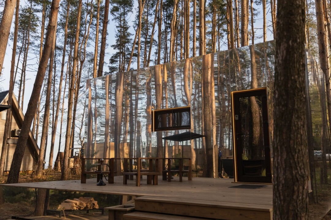 Здесь вполне можно устроить уединенный уикенд на двоих или организовать спокойный (наконец-то!) семейный отдых: сосновый лес, ужин на мангале, чан под открытым небом. Есть домики и на двоих, и на четверых. Самый необычный из них – зеркальный, из безрамного стекла, в котором обещают полнейшее слияние с природой.
