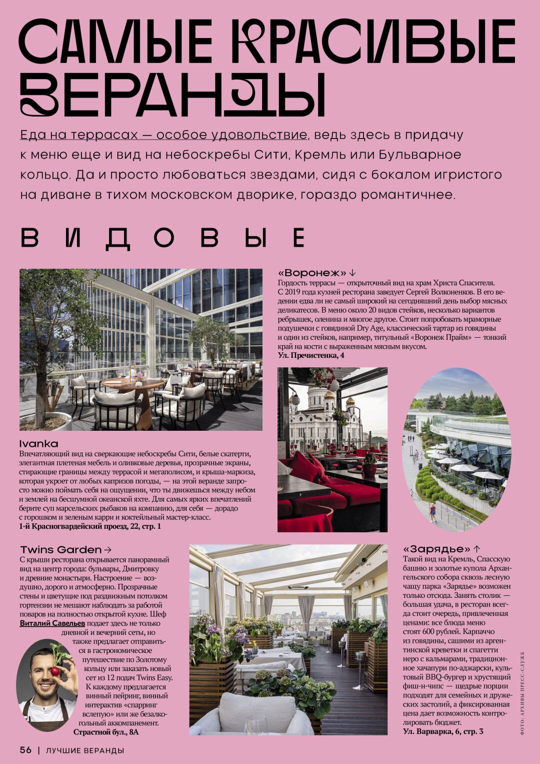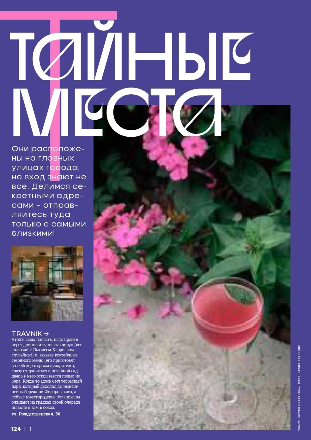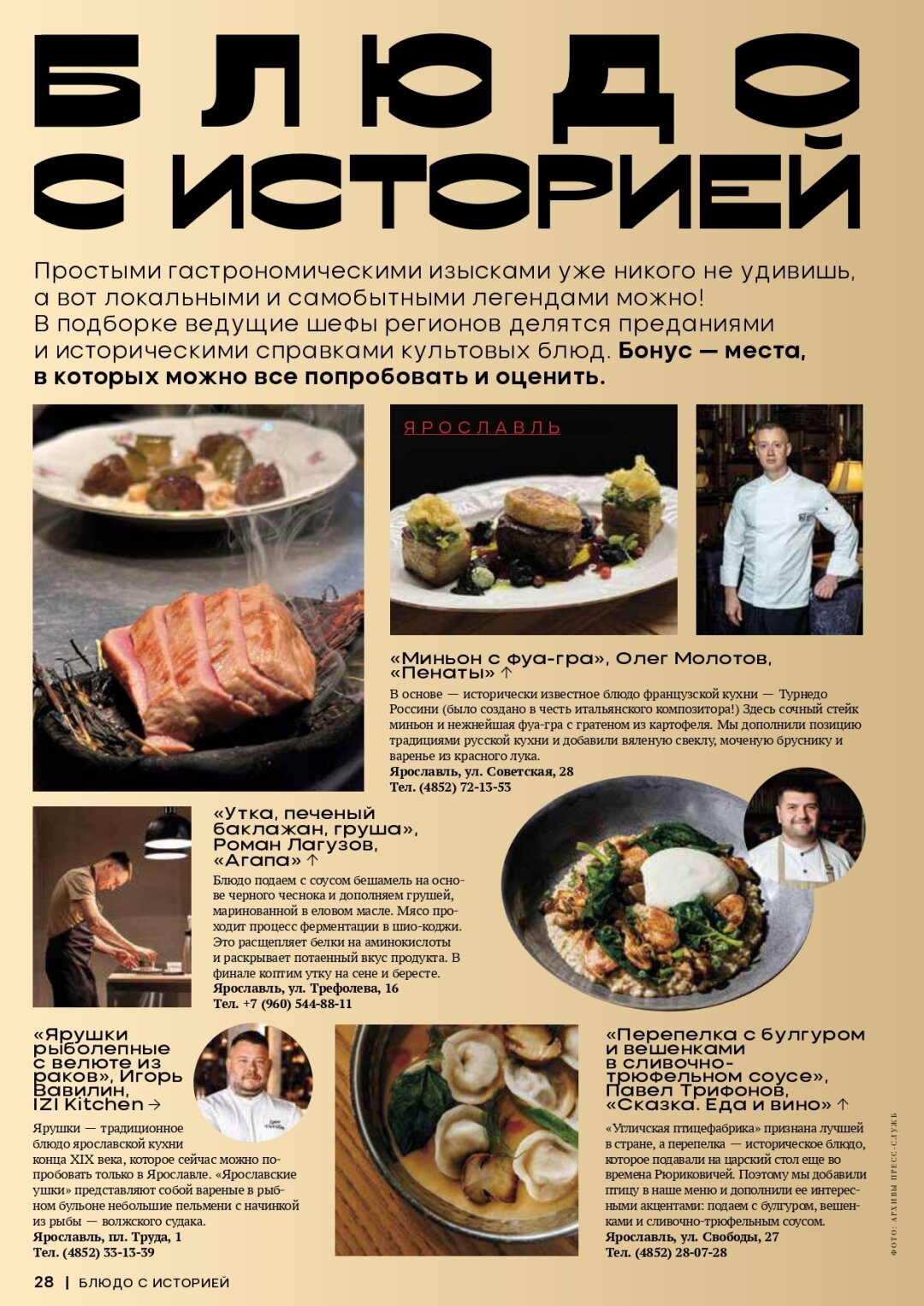 Редакция не питает иллюзий: невозможно дать полный и исчерпывающий ответ на вопрос «Что где есть в Центральной России?» в одном издании («Энциклопедический словарь Брокгауза и Ефрона» насчитывает 82 основных и 4 дополнительных полутома!). Но мы всегда с интересом наблюдаем за отдельными героями и локациями, шефами и ресторанами, конкретными блюдами и коктейлями, которые нацелены попасть в самое сердечко.