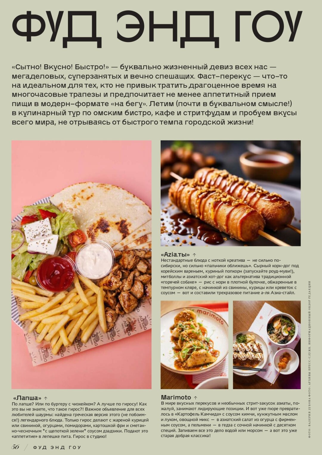 В глубинах Сибири, где Иртыш шепчет древние сказания, а ветра приносят ароматы со всех концов света, Омск явил миру свой первый гастрогид, ради которого редакция «Омск.Собака.ru» несколько месяцев тщательно изучала локальные рестораны, кафе, бары (и не только!), знакомилась с первоклассными шефами, составляла свои топы блюд и заведений.