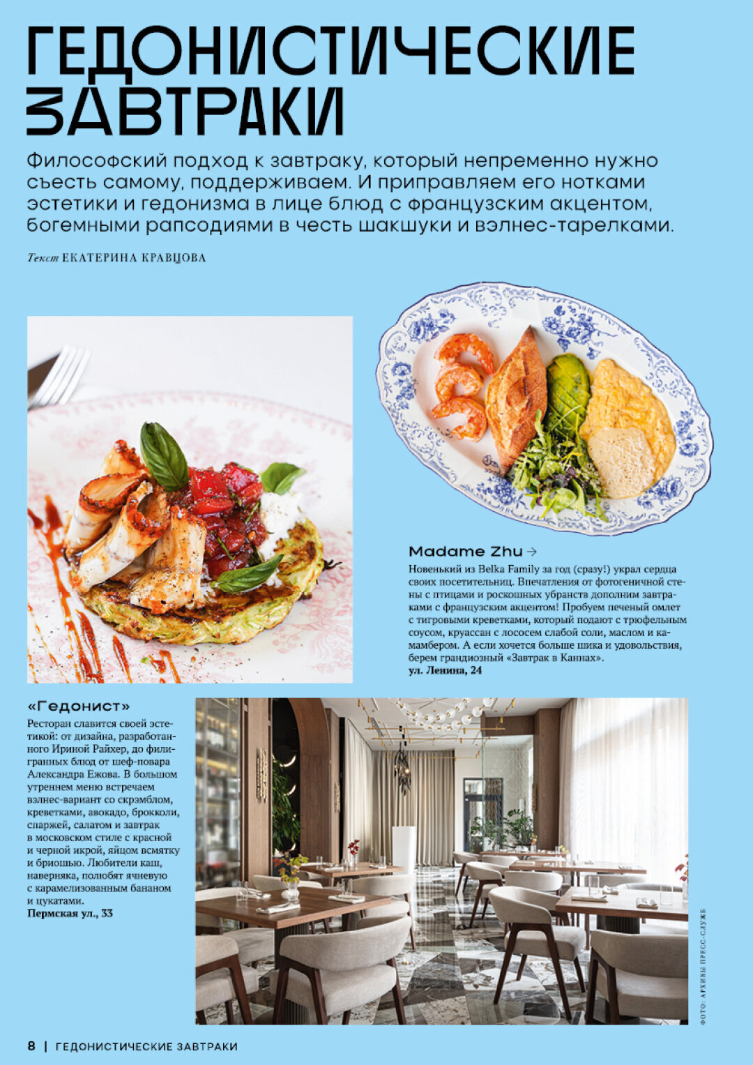 Редакция в Перми выпустила аж два гастрогида — в одном собрала все знаковые места города (в том числе рестораны, которые находятся в старинных городских зданиях!), а в другом все про завтраки и десерты.