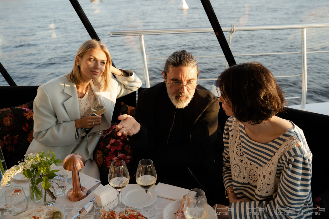 Благотворительный проект «3,14» отправился в круиз на двухпалубном корабле Kuznyahouse. На борту гостей приветствовали Шорена Джинали, Мария Смирнова и Марина Железнова: соосновательницы «3,14» поблагодарили за внимание к проблемам остронуждающихся в медицинской помощи детей и объявили старт аукциона. Его (уже не первый раз!) провела писательница Ирина Оганова, которая жгла глаголом сердца собравшихся и помогла собрать почти 1,5 миллиона рублей.