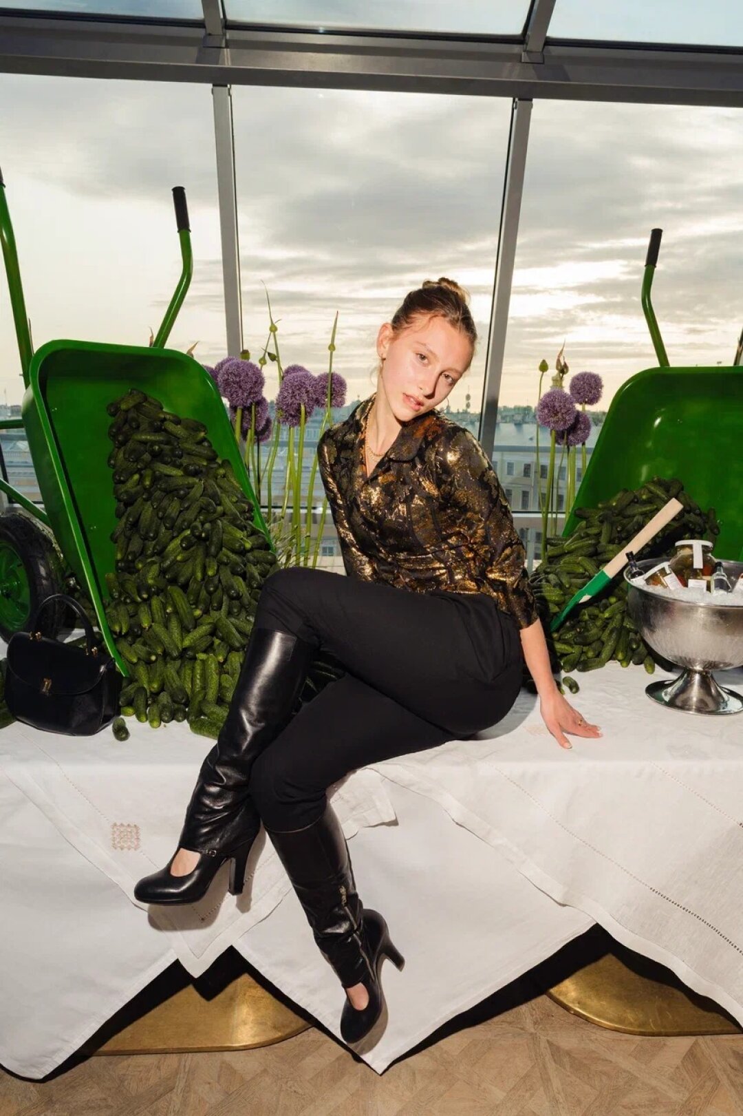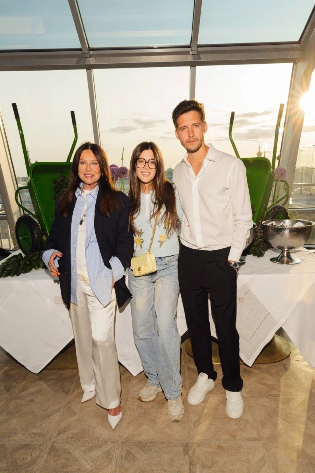 Пока Алена Бердова профессионально оценивала грядки, высаженные ее коллегами пару недель назад, Ирина Оганова дегустировала коктейли на огуречном рассоле на террасе ресторана Bellevue. Во время вечеринки Кирилл Шаманов анонсировал свой новый художественный проект в рамках приближающегося Экономическоно форума (готовимся рассматривать художественные монеты стран BRICS+!). А Анатолий Белкин и Покрас Лампас обсудили и хруст огурцов DVK farm, и творческие проекты.