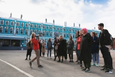Гости, приехавшие на открытие нового сезона Музея стрит-арта «Праздник к вам приходит», оказались обескуражены появлением на шоссе Революции второго Эрмитажа. Правда, перед ним, вместо Александровской колонны, возвышался памятник Владимиру Ильичу Ленину, благодаря чему легко считывался про-октябрьский настрой выставки, задуманный кураторами Андреем Зайцевым и Яшей Янг. Оценить масштаб революционности стрит-арта в этот день собрались многие, в том числе участница группы AES+F Татьяна Арзамасова, художник Сергей Пахомов, философ Александр Секацкий и поэтесса Наташа Романова.