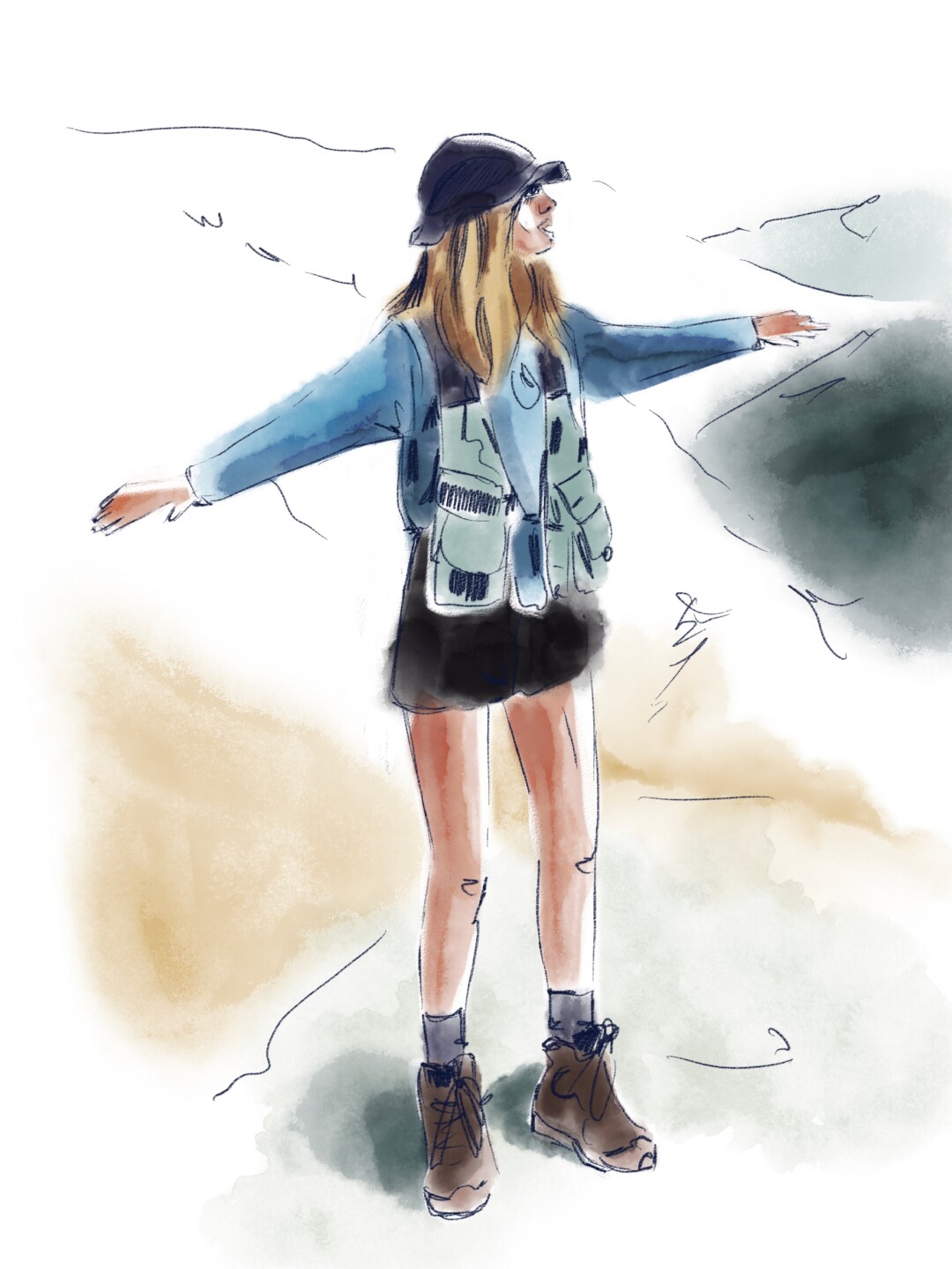 Всегда готова к приключениям: ее одежда чаще всего – немного «дорожный рюкзак» и «палатка» в одном флаконе. Защита от непогоды, немнущиеся ткани, множество карманов: практичность, возведенная в стиль.