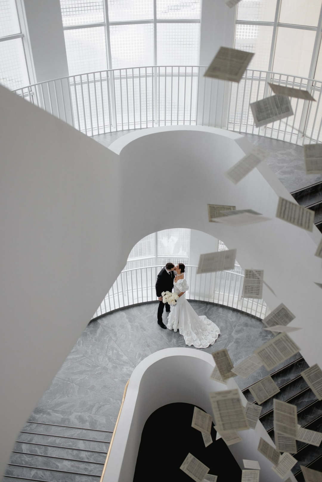 Когда мы узнали об этой истории, мы поняли, где должна быть свадьба. Мы создали инсталляцию с парящими в воздухе любовными письмами в Нижегородской филармонии. Кстати, в то время, когда пара фотографировалась, на площадке еще вовсю шел монтаж. Но мы, конечно, успели!»