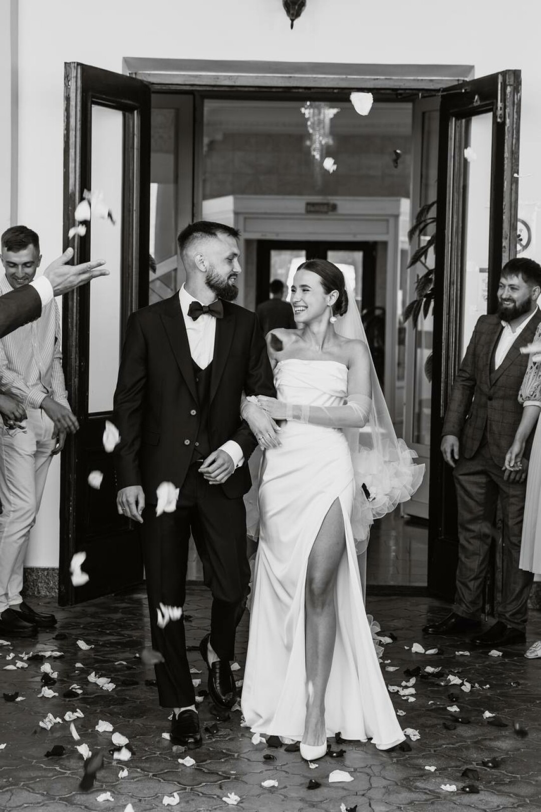 Женя Чудовская, соосновательница агентства: «С теплотой вспоминаем семейные ужины на веранде, свадебную вечеринку на крыше с танцами, коктейлями и прыжком в бассейн, а еще сказочную историю а la russe и, конечно, винтажную свадьбу, которая закончилась просмотром черно-белого фильма на проекторе».