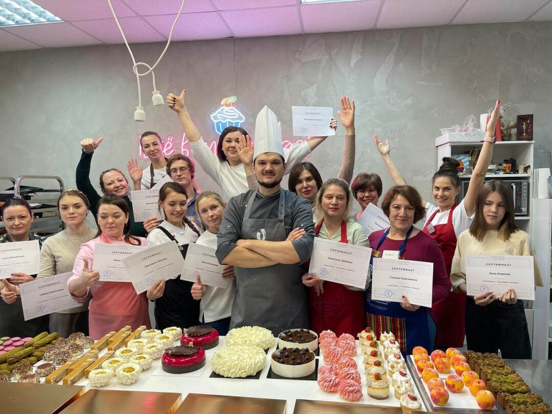 Я специально разработала и утвердила в Министерстве образования курс, по окончанию которого выдается диплом кондитера V разряда. Мы даем большой объем теоретических и практических знаний (включая отработку рецептов и технологические карты), которые позволяют работать сразу после аттестации. У нас уже выпустилось восемь групп, причем «студенты» в них были самые разные — от подростков до взрослых людей, всегда мечтавших работать в кондитерской отрасли.