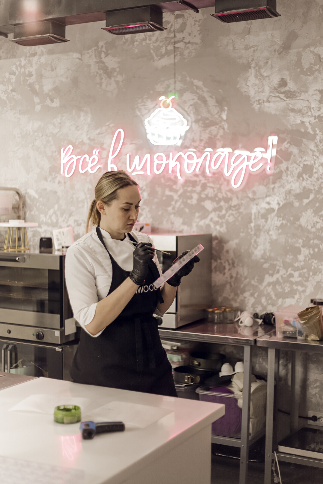 Шесть лет назад, когда у меня родился третий ребенок, я задумалась о смене работы в найме на хобби, которое будет приносить доход и давать возможность для самосовершенствования. Именно тогда я попала на кондитерский мастер-класс и удивилась, насколько просто сделать шикарный торт или десерт из обычных ингредиентов. Уже через месяц я начала продавать свою продукцию — мои торты оказались очень востребованы. Со временем я прошла много обучений и поняла, что готова делиться секретами мастерства: сначала занятия проходили в арендуемых помещениях, а затем студия «Все в шоколаде!» обзавелась собственным пространством с современным оборудованием. На наши мероприятия всегда собирается много участников, люди искренне рекомендуют студию друг другу, особо отмечая уютную, дружескую атмосферу.