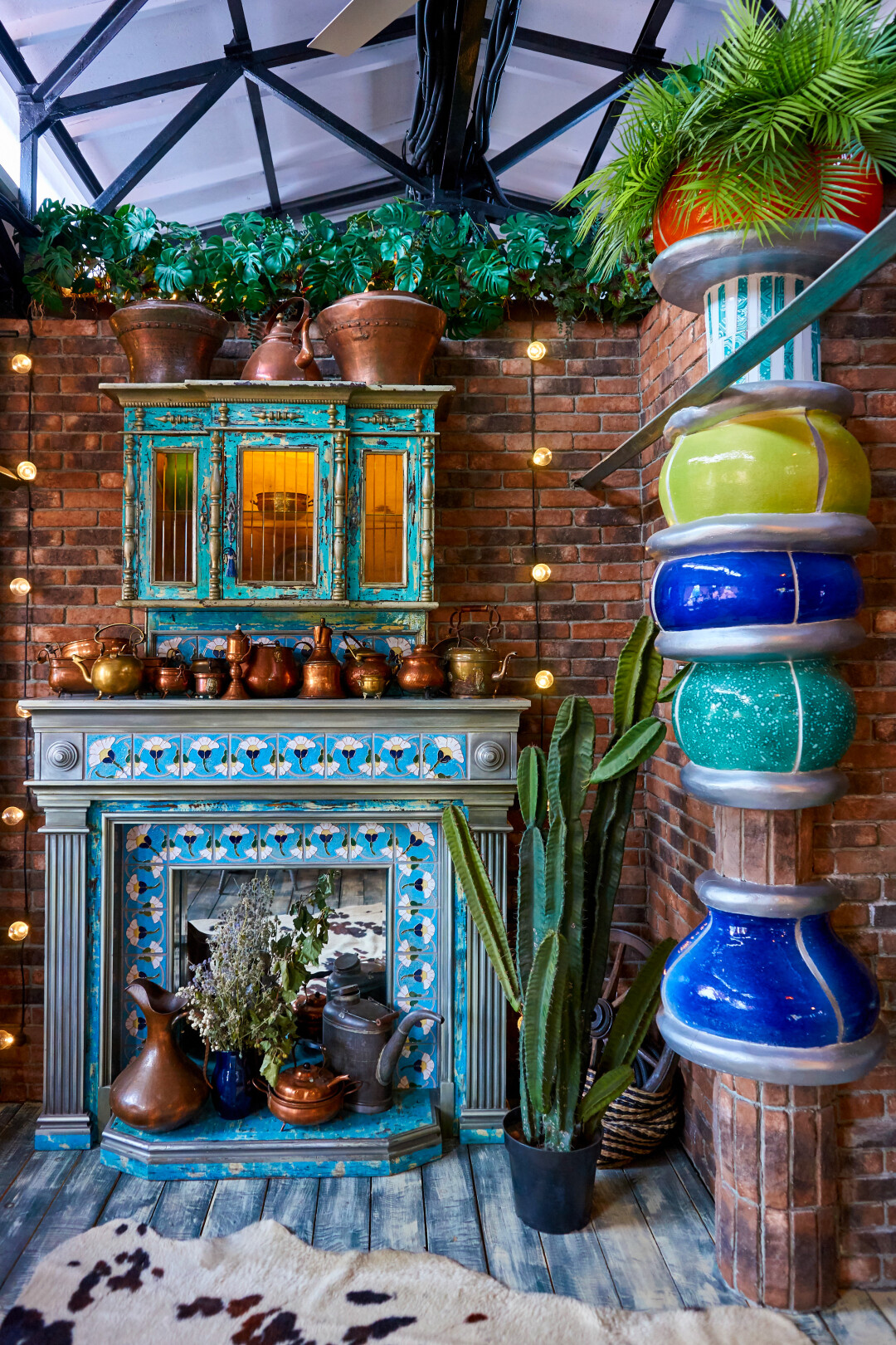 Интерьер ресторана собран из уникальных коллекций мирового уровня: это и старинная русская мебель, советский и русский фарфор, подлинники картин сибирского импрессиониста Леонида Иванова, чьи работы участвовали в аукционах Sotheby's, и коллекция настоящих старинных театральных марионеток со всего мира, насчитывающая порядка пятисот экспонатов, старшему из которых более трехсот лет.