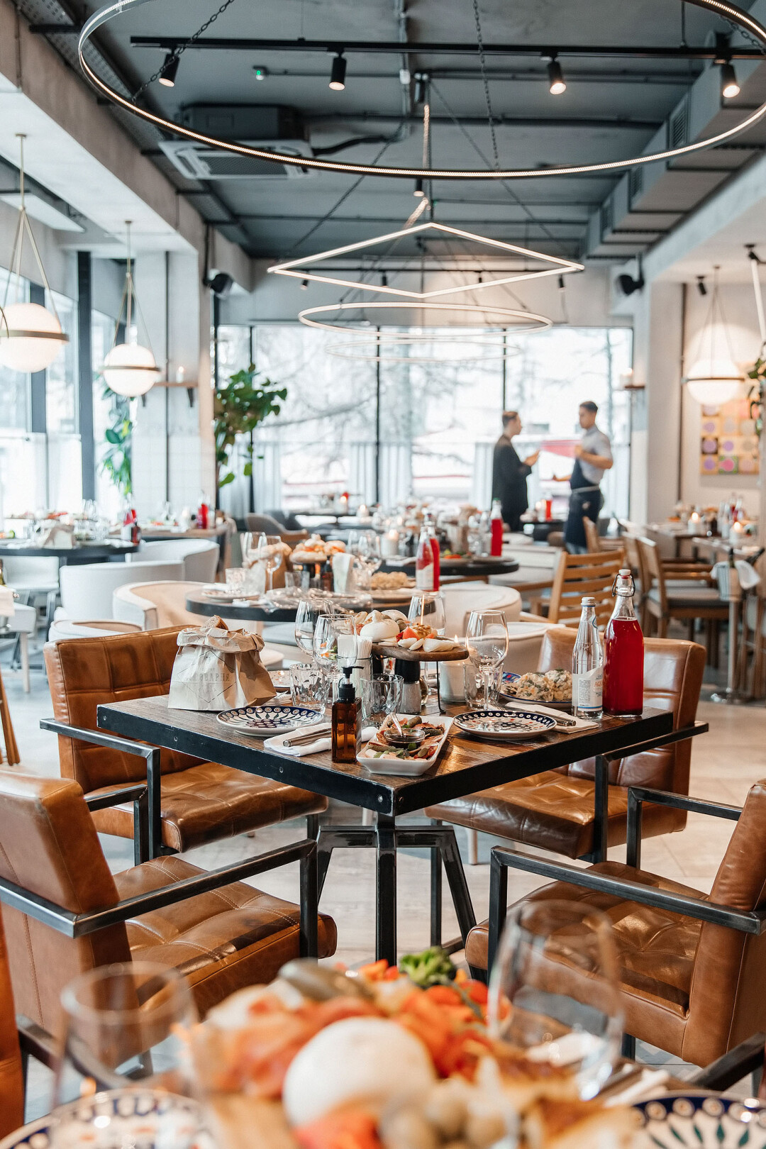 В ресторане три зала. Основной, рассчитанный на 128 посадочных мест, с отрытой кухней, контактным баром и детской комнатой, в которой работает няня. Малый, порядка семидесяти мест, где гости могут отдохнуть в более неформальной обстановке. А также ВИП-зал, максимальной вместимостью пятнадцать человек, полностью обособленный, с отдельной уборной и обзорными окнами на производство сыров. Малый зал и ВИП-зал прекрасно подойдут для проведения мероприятия разных форматов, это может быть деловая корпоративная встреча или ужин, день рождение, юбилей, или даже свадьба. Профессиональная подготовка команды ресторана обеспечит достойный уровень комфорта, а кухня наверняка покорит сердце любого гурмана.