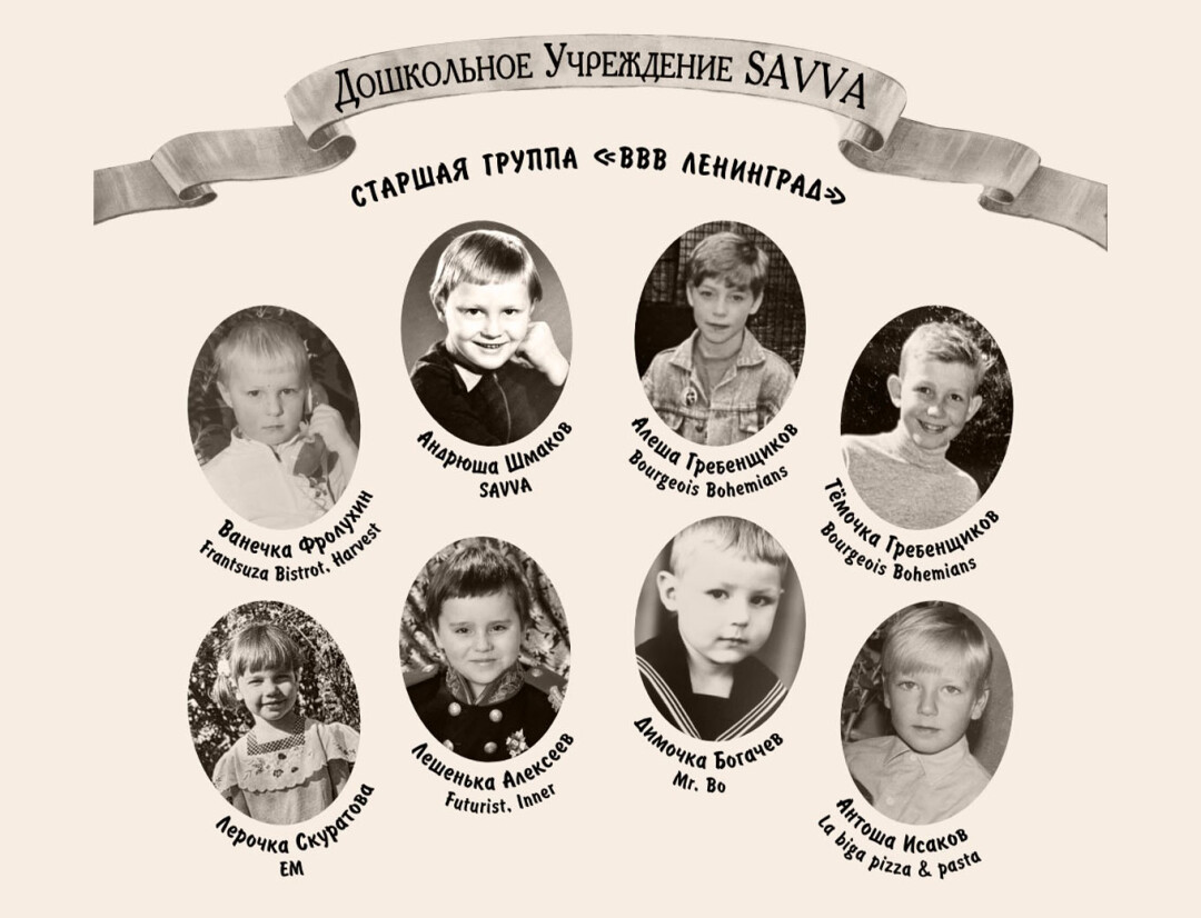 В ресторане SAVVA в исторической гостинице «Метрополь» соберется звездная компания: Артем и Алексей Гребенщиковы (Bourgeois Bohemians), Иван Фролухин (Frantsuza Bistrot, Harvest), Дмитрий Богачев (Mr. Bo), Антон Исаков (La biga pizza & pasta), Алексей Алексеев (Futurist, Inner), Валерия Скуратова (ЕМ) и сам хозяин вечера - Андрей Шмаков. Каждый из шефов не только приготовит особое блюдо, но и расскажет историю его создания со сцены ресторана.