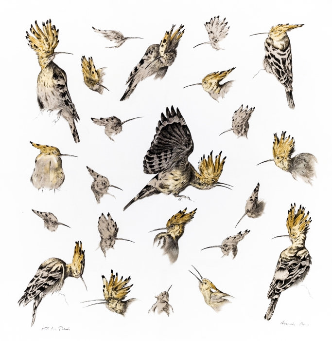 Один из самых редких винтажных каре Hermès «Les Huppes» («Удоды») появился на свет в 1958 году благодаря таланту французского графика Ксавье де Порет. За годы сотрудничества с Домом Hermes художник нарисовал четырнадцать картин-платков с животными и птицами.