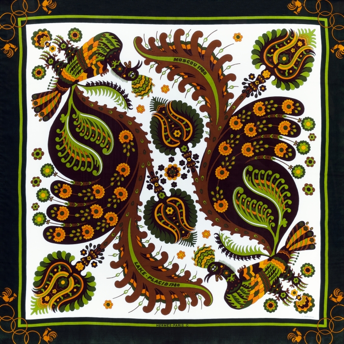 Платок-каре «Skyros» («Скирос») посвящен одноименному греческому острову. Он был создан в 1971 году Джулией Абади, а в 1980 году специально к Олимпийским играм — зимним в Лейк-Плесиде и летним в Москве — ограниченным тиражом был выпущен русский ремейк, дизайн которого выбирали представители олимпийского Оргкомитета СССР в штаб-квартире Дома Hermes в Париже.