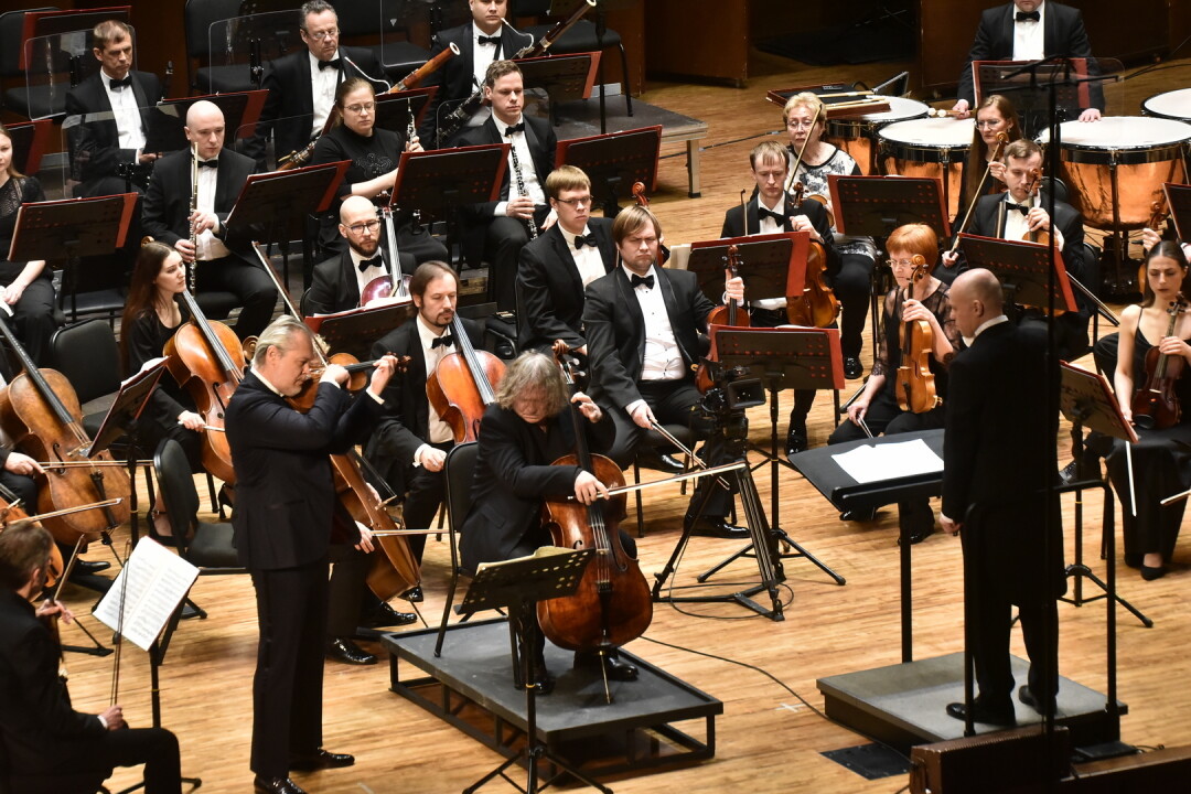 «Как всегда, с радостью стою на одной сцене с нашим замечательным, уникальным симфоническим оркестром, с которым я вырос. Вас много – это самый лучший комплимент, самая лучшая награда для артистов – когда полный зал. Я чувствую праздничную энергетику этого зала, и слова благодарности, как обычно, нам всем, потому что огромная команда Транссибирского фестиваля работает. Хочу вас поблагодарить за то, что вы находитесь с нами в этом загадочном, сказочном, интересном путешествии сквозь все возможные виды искусства. Я желаю вам прекрасного плавания», – обратился к собравшимся Народный артист России Вадим Репин.