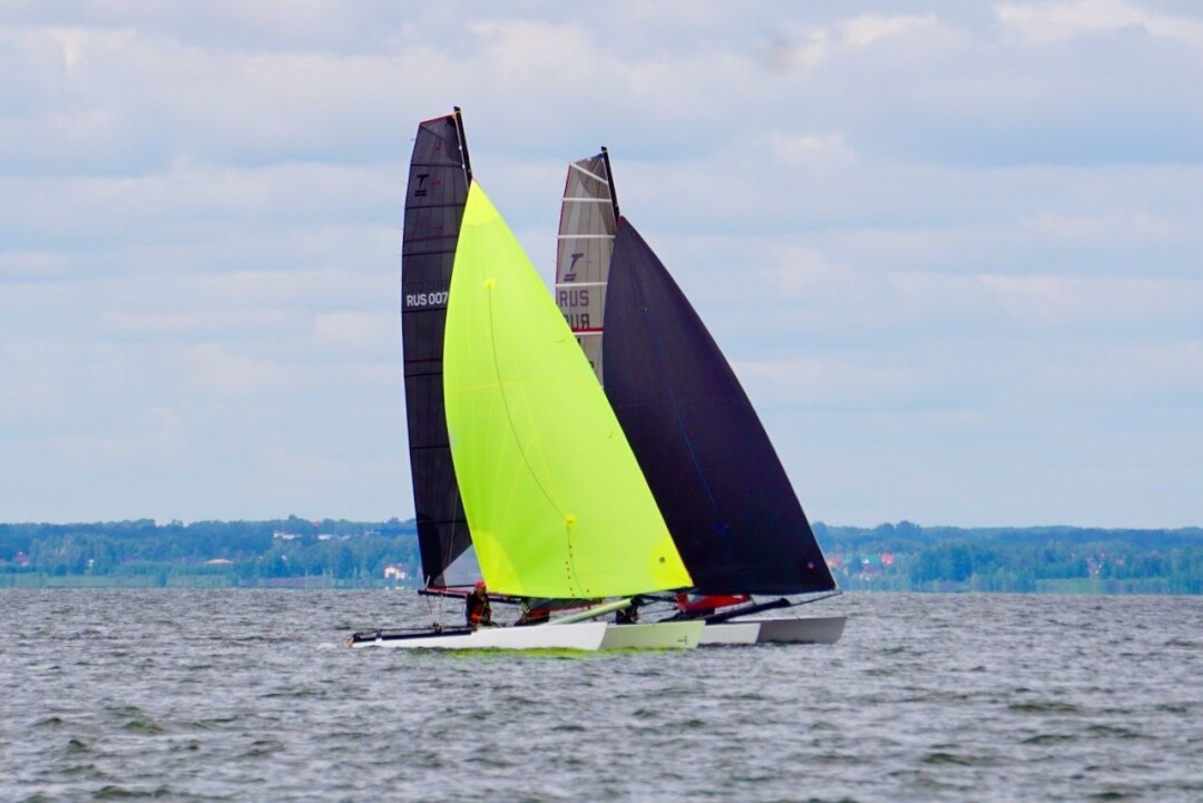 Среди катамаранов «Торнадо» первым пришел парусник с экипажем наших земляков Марии и Максима Стрельниковых.