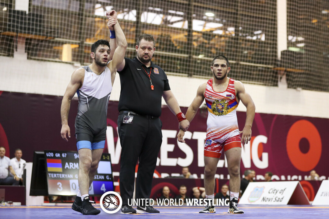 В финале Грайр Оганесян встречался с победителем первенства мира среди борцов до 17 лет Гаспаром Тертеряном из Армении. Для Оганесяна первенство в Нови-Саде было дебютом на международной арене. Атлеты обменялись баллами за активность. В партере Оганесян не сумел совершить приём, а Тертерян сделал накат и повёл в счёте 3:1. До конца схватки оставалось меньше двух минут. Оганесян нашел брешь в защите соперника – в стойке перевёл его в партер, затем наш борец выдержал атаки соперника, нашёл момент, чтобы вытолкнуть его за пределы ковра и выиграл со счётом 4:3.
