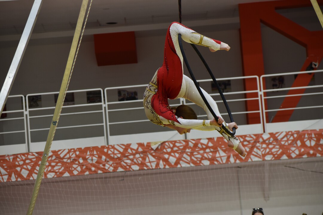 Воздушная гимнастика включает в себя несколько дисциплин: воздушные полотна, воздушное кольцо и воздушные стропы, данная дисциплина появилась только в этом году. Далеко не каждый спортивный комплекс сможет принять на своей площадке воздушных гимнастов. Специфика вида спорта подразумевает высокий потолок. Специализированное помещение есть в Заельцовском районе, там базируется четыре школы воздушной гимнастики. Для прошедших соревнований организаторами было приобретено специальное оборудование «пирамида» - это специальная конструкция, которая предназначена для выступления в тех залах, где нельзя крепить к потолку оборудование. Ее высота шесть метров, она позволяет закрепить все виды инвентаря.